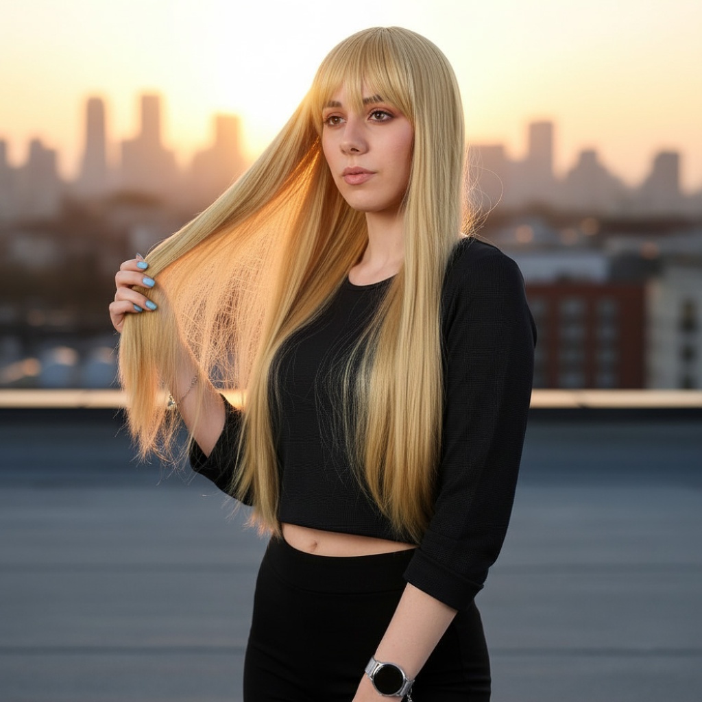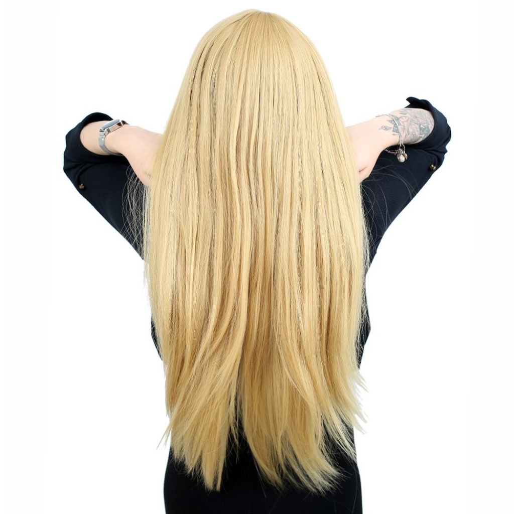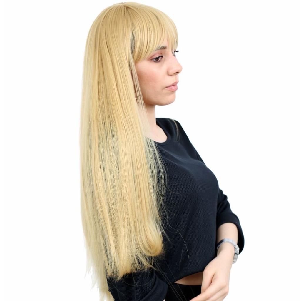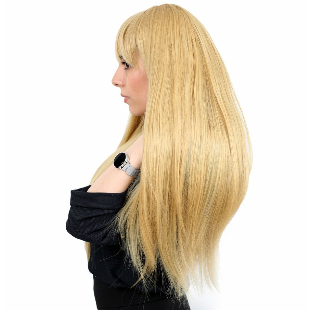 Fiber Sentetik Uzun Düz Kahküllü Peruk - Sarı