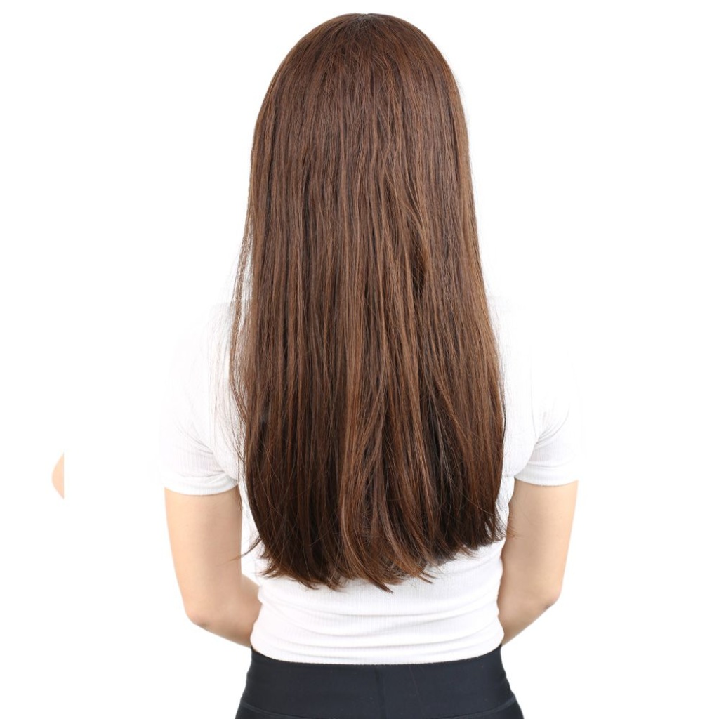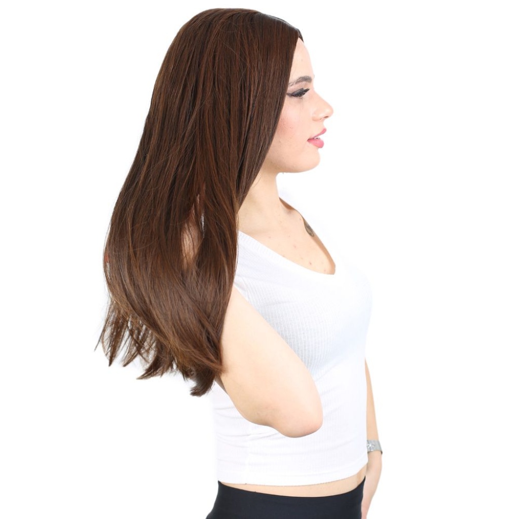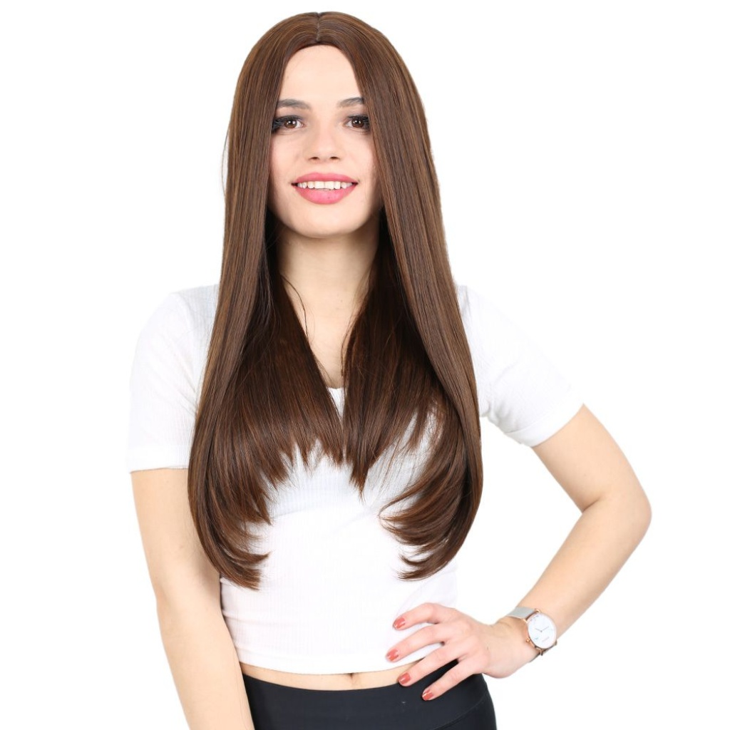 Fiber Sentetik Uzun Düz Peruk - Kahve Karamel