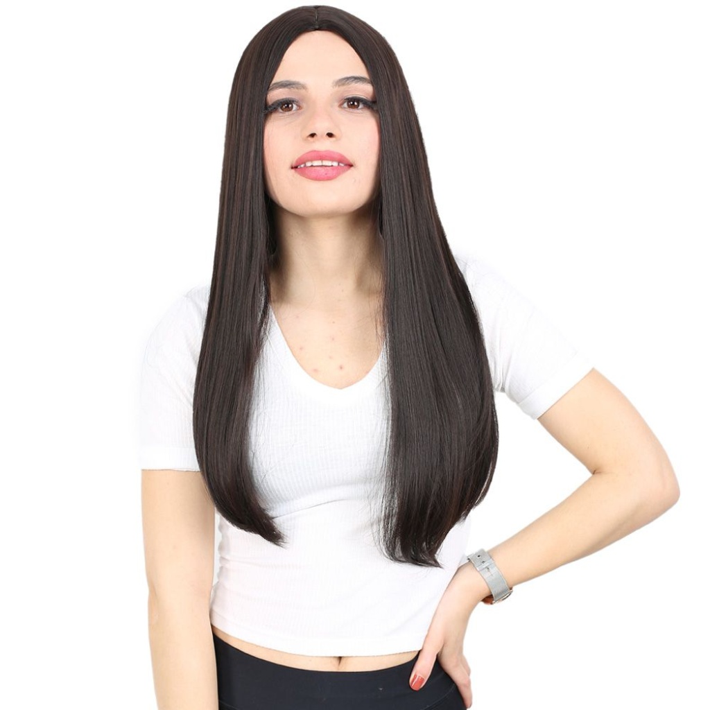 Fiber Sentetik Uzun Düz Peruk - Kahverengi