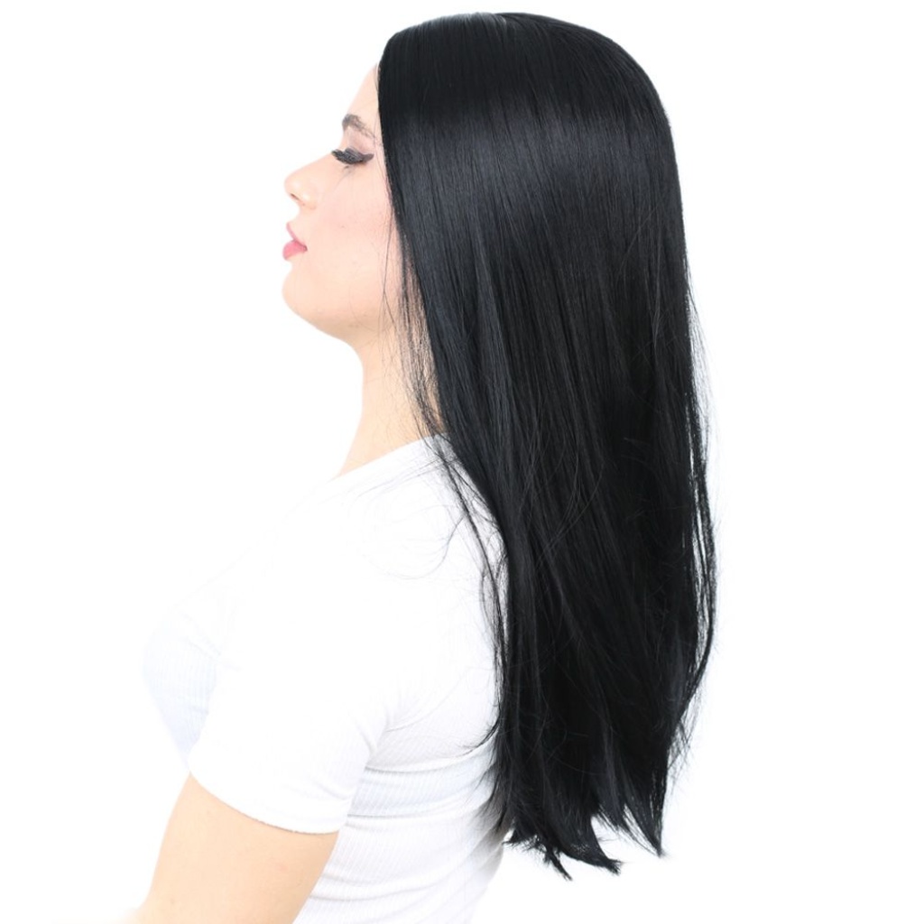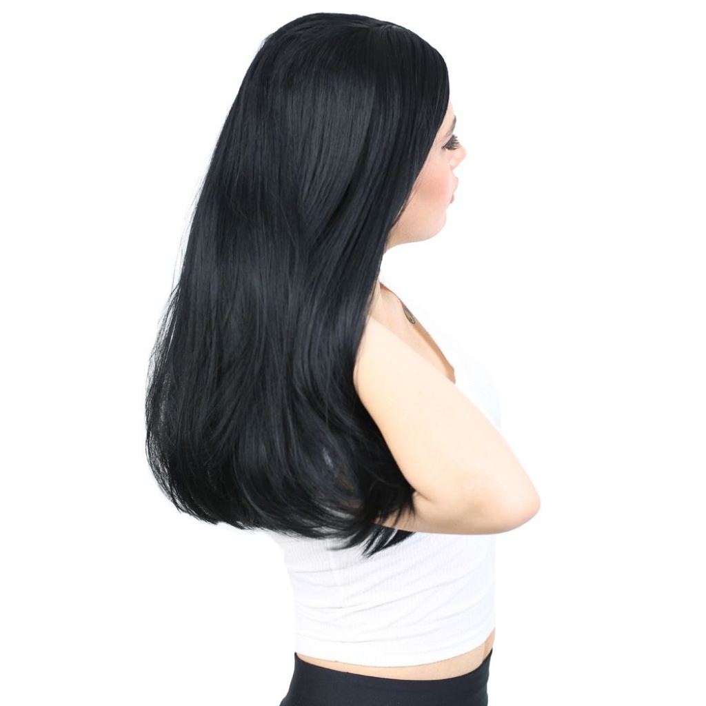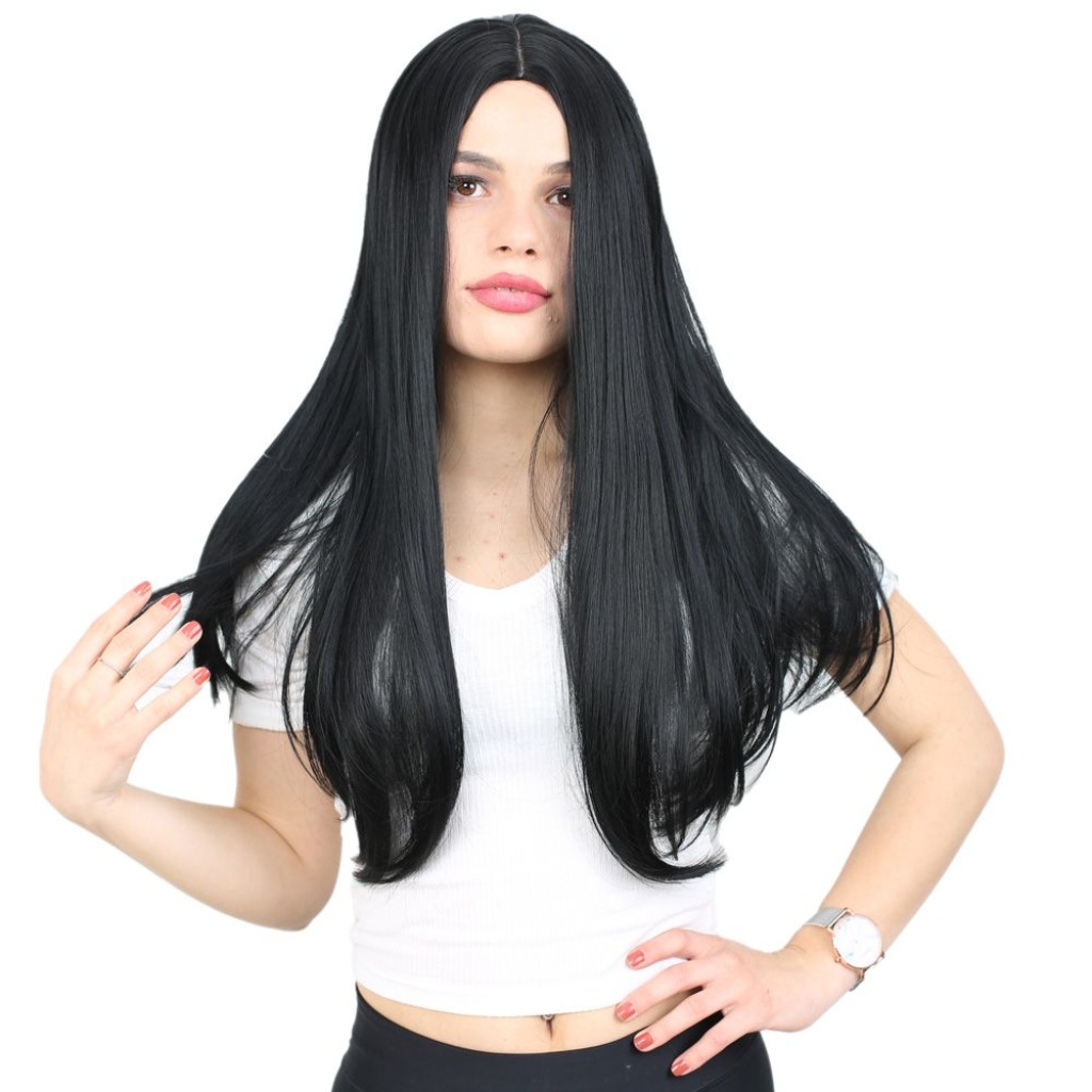 Fiber Sentetik Uzun Düz Peruk - Siyah