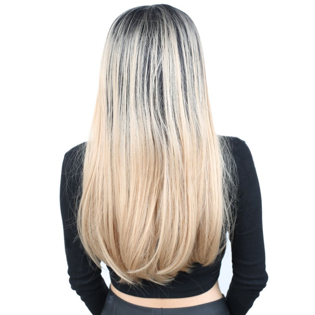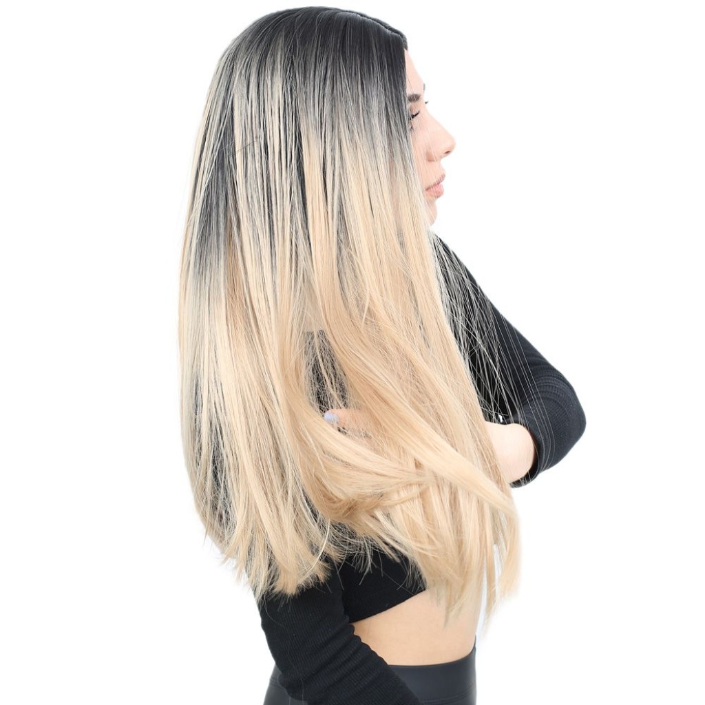 Fiber Sentetik Uzun Düz Peruk - Siyah / Balköpüğü Ombreli