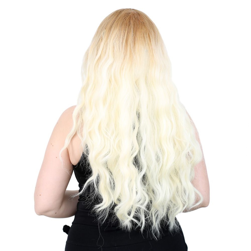 Fiber Sentetik Uzun Su Dalgası Peruk - Balköpüğü / Platin Uzun Ombreli