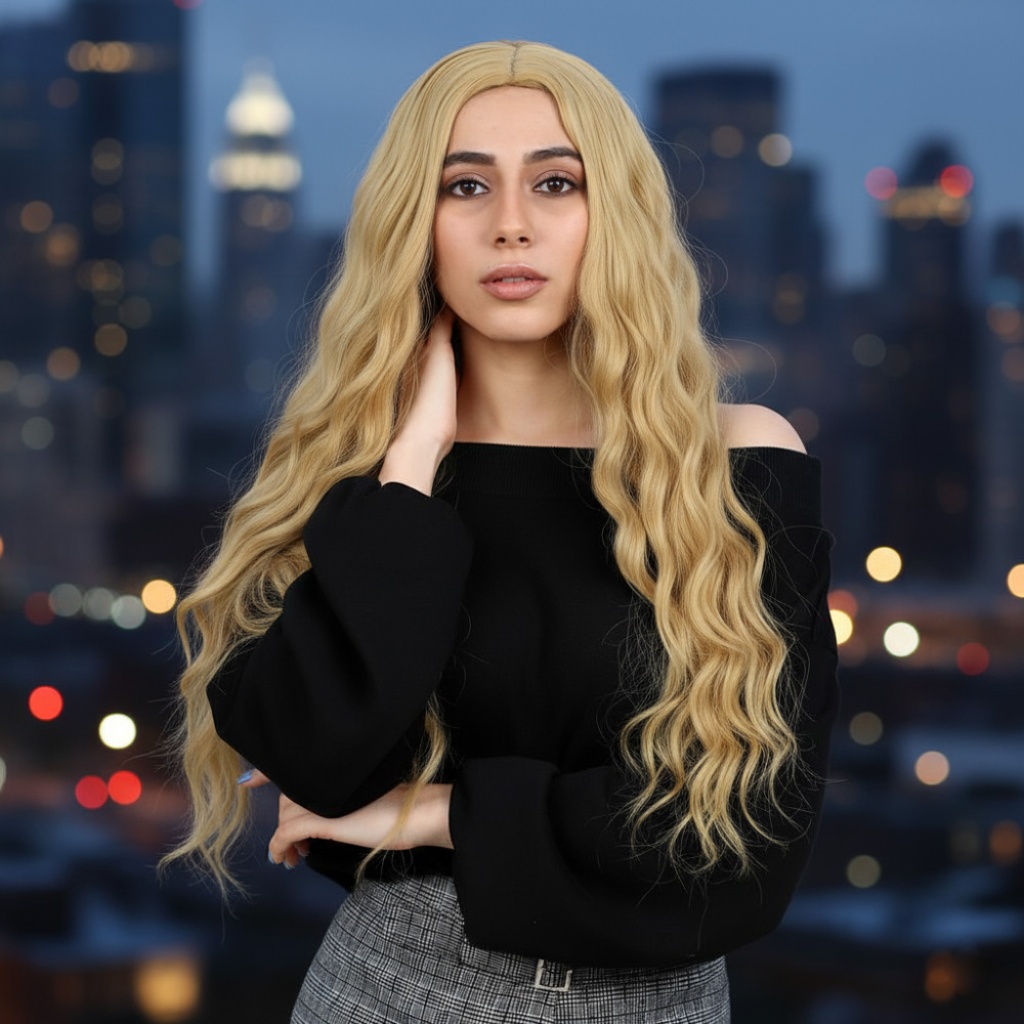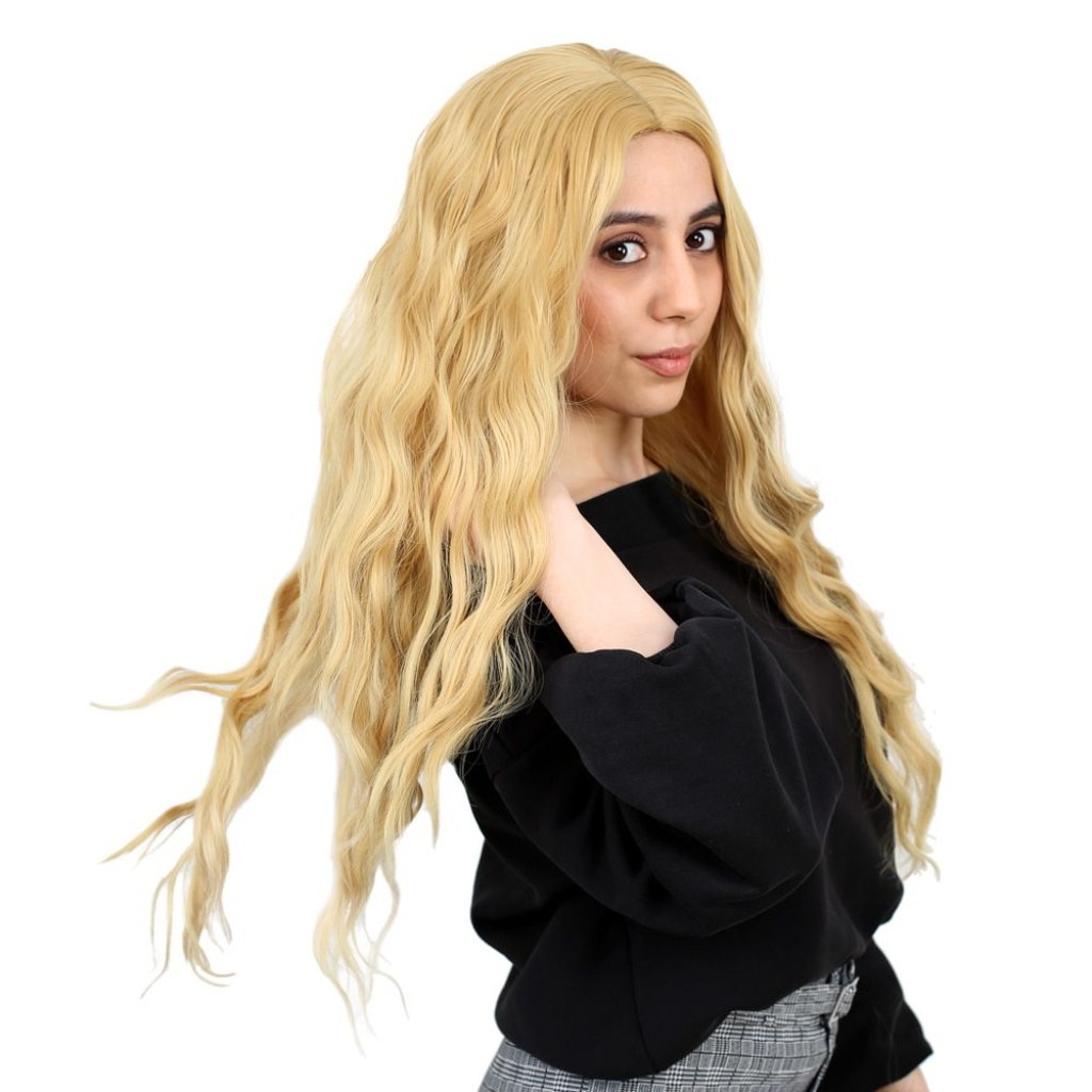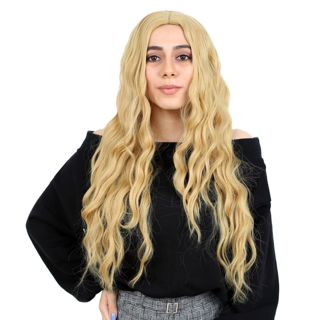 Fiber Sentetik Uzun Su Dalgası Peruk - Sarı