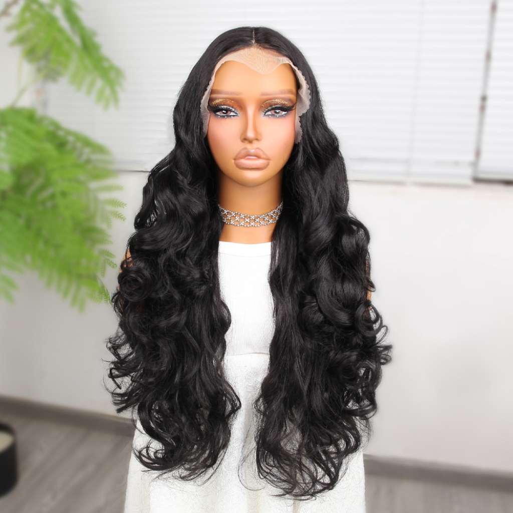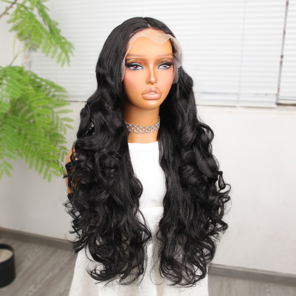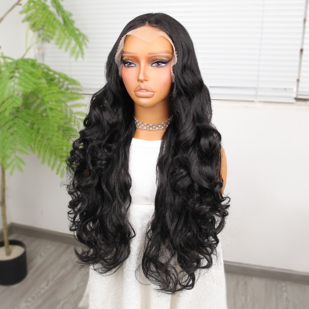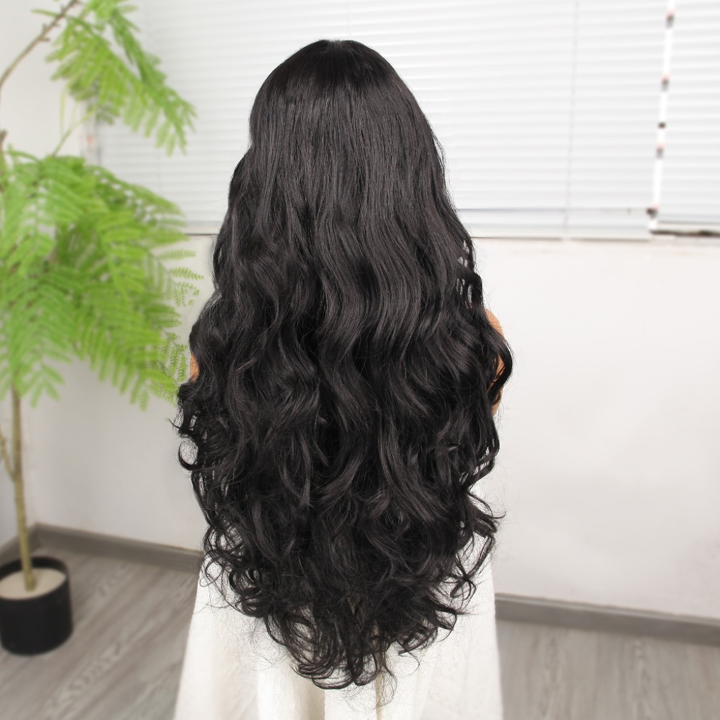Gür Yoğun Su Dalgalı Siyah Fiber Sentetik Uzun Tül Peruk