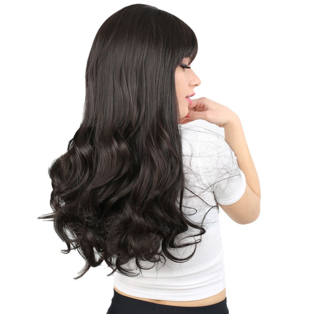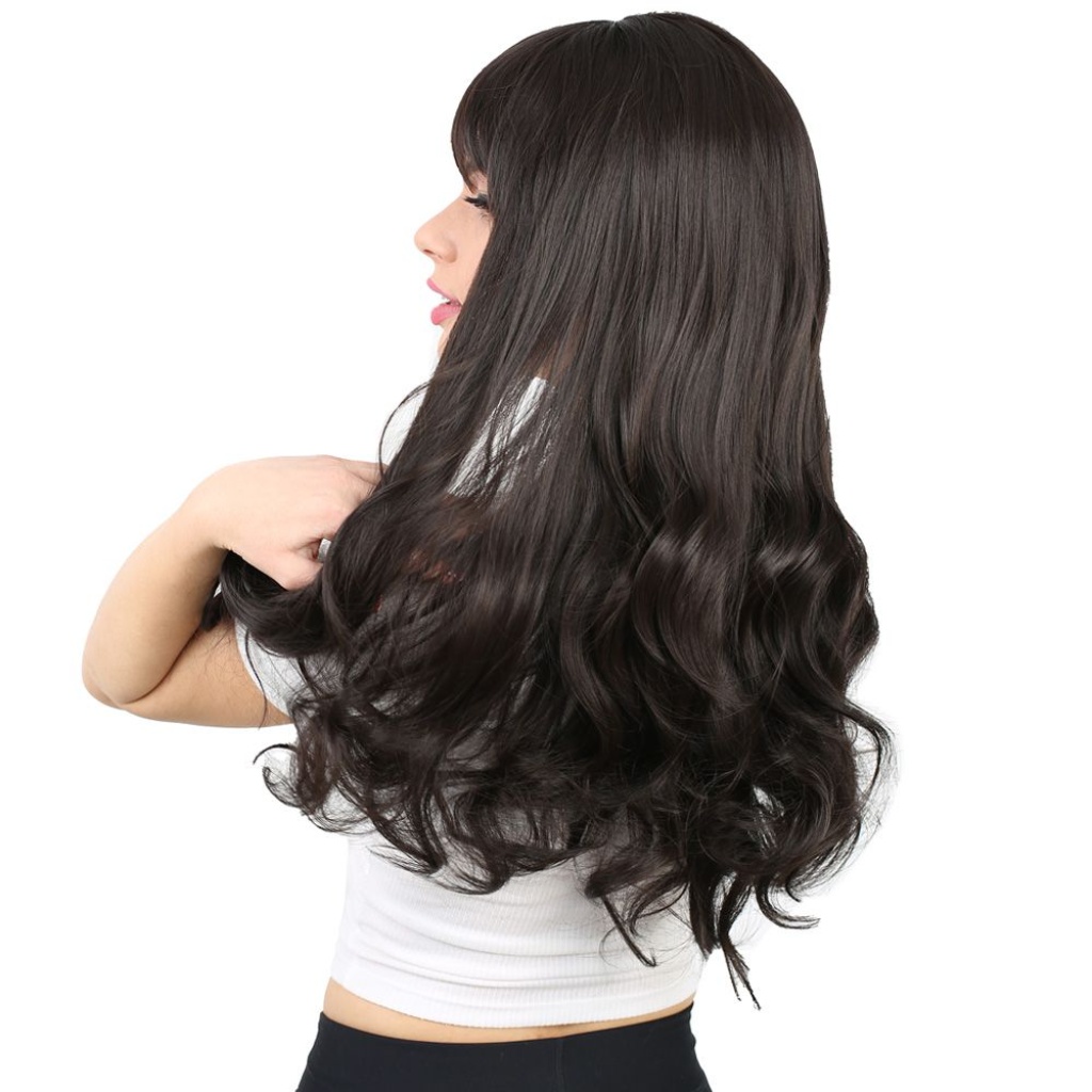 Kahküllü Uzun Dalgalı Fiber Sentetik Peruk - Kahverengi