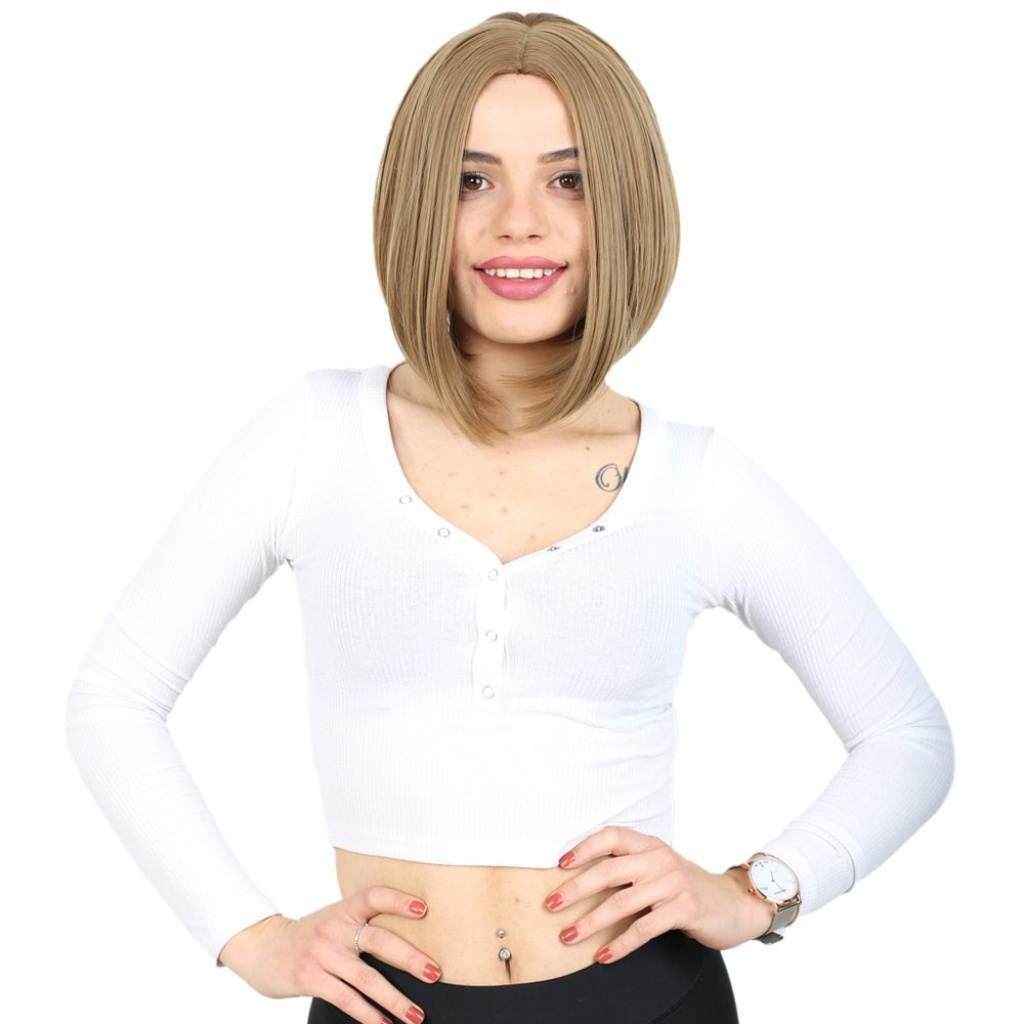Kahkülsüz Düz Kısa Fiber Sentetik Peruk - Bebek Kumralı