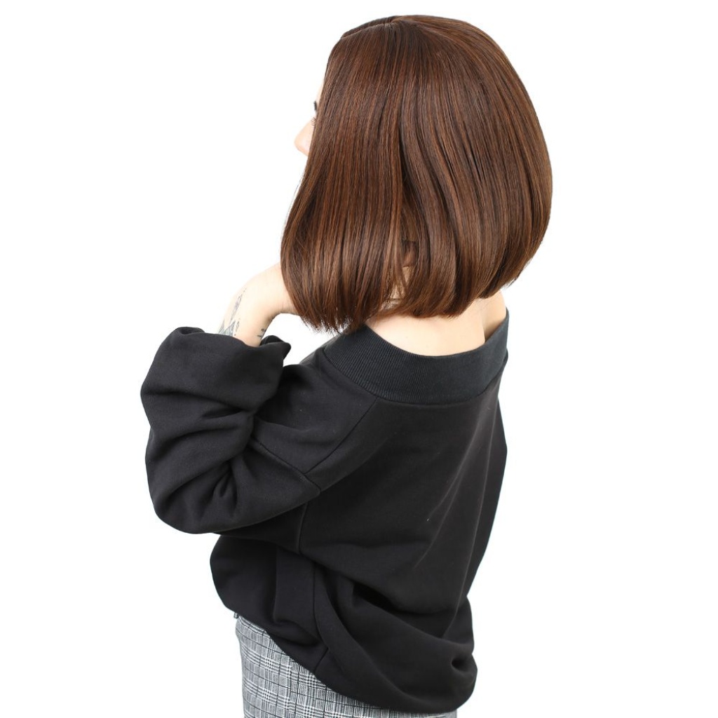 Kahkülsüz Düz Kısa Fiber Sentetik Peruk - Kahve Karamel