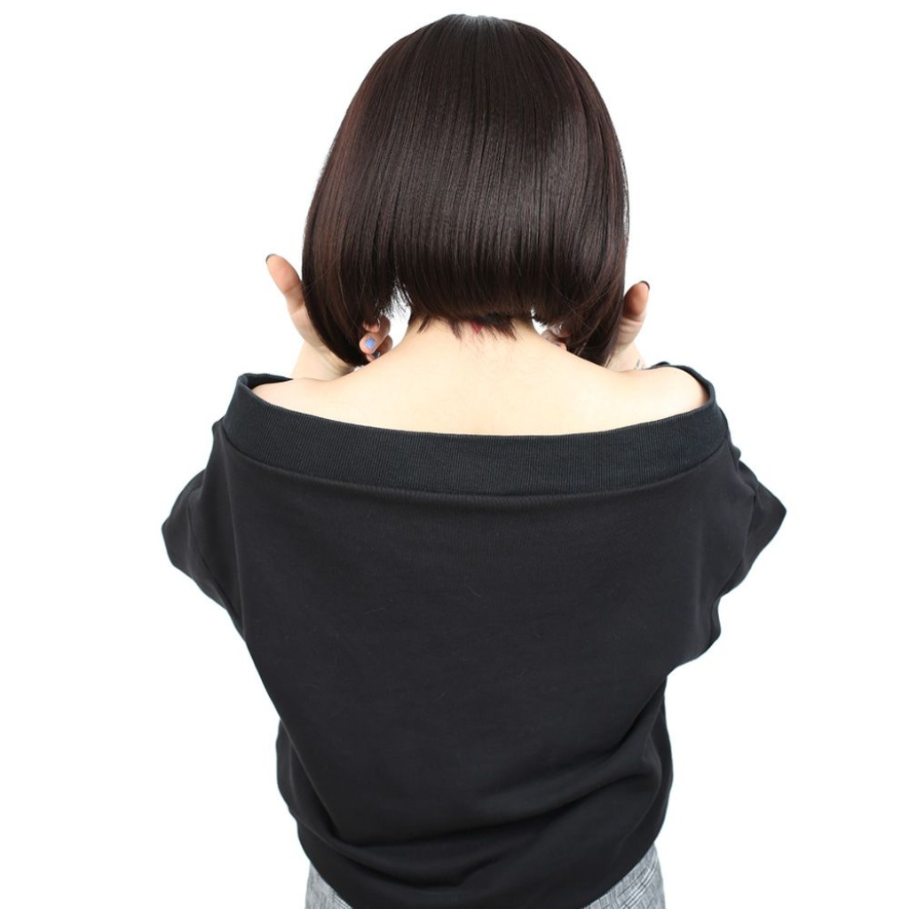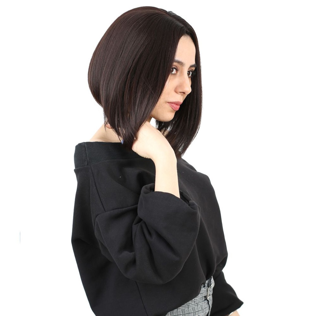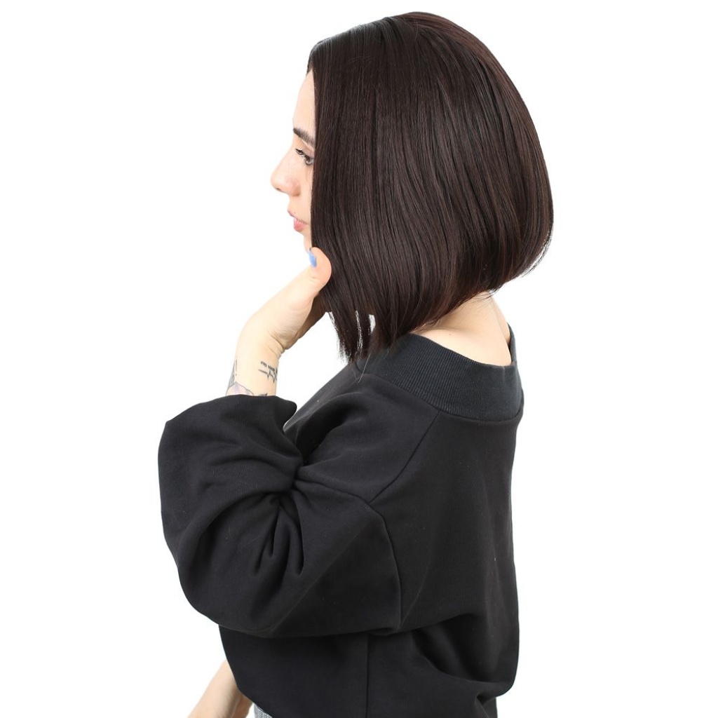 Kahkülsüz Düz Kısa Fiber Sentetik Peruk - Koyu Kahve
