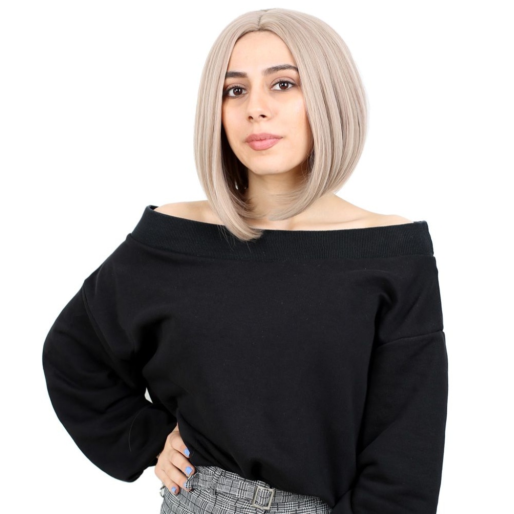 Kahkülsüz Düz Kısa Fiber Sentetik Peruk - Küllü Bebek Sarı