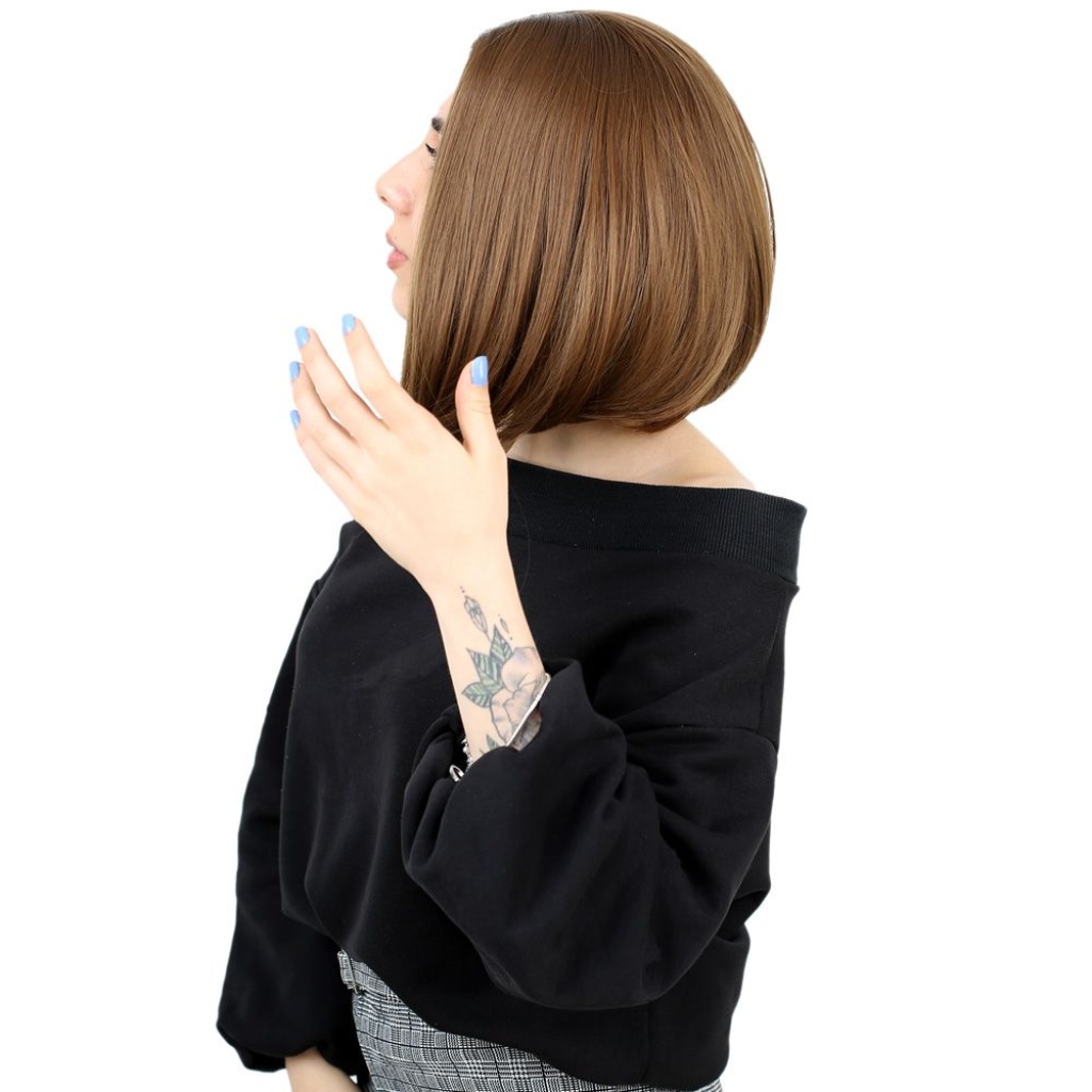 Kahkülsüz Düz Kısa Fiber Sentetik Peruk - Kumral