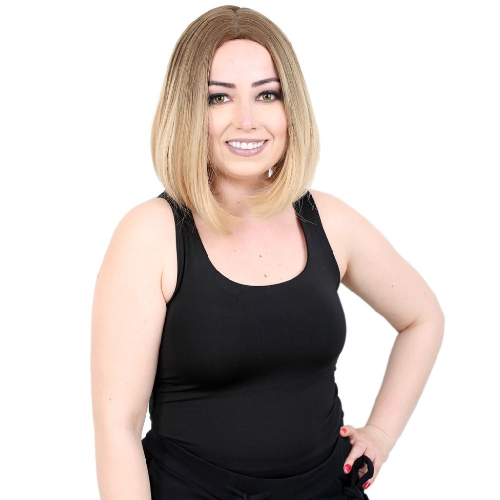 Kahkülsüz Düz Kısa Fiber Sentetik Peruk - Kumral / Balköpüğü Ombreli