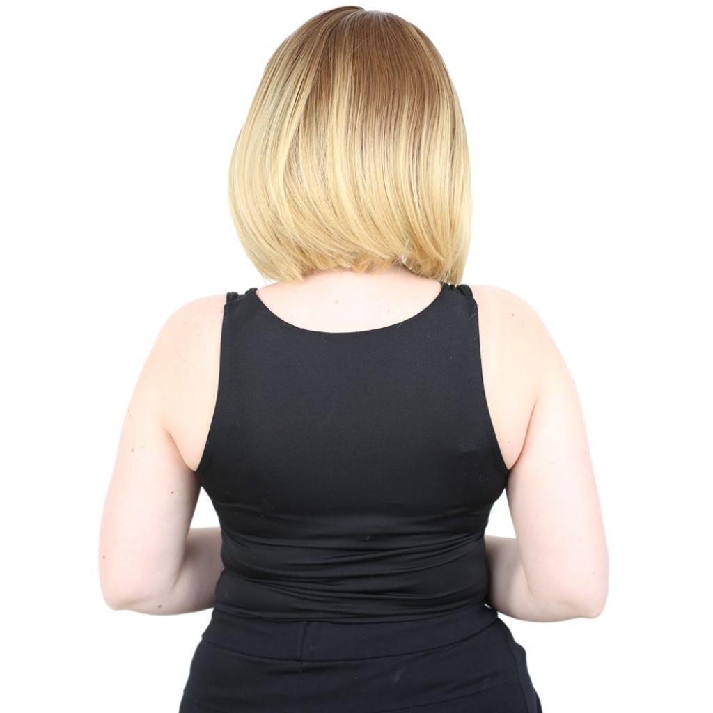 Kahkülsüz Düz Kısa Fiber Sentetik Peruk - Kumral / Sarı Ombreli