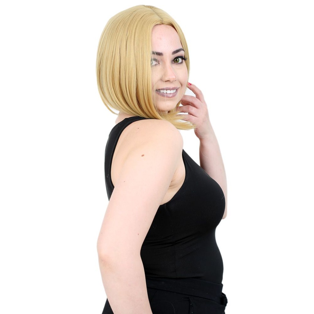 Kahkülsüz Düz Kısa Fiber Sentetik Peruk - Sarı