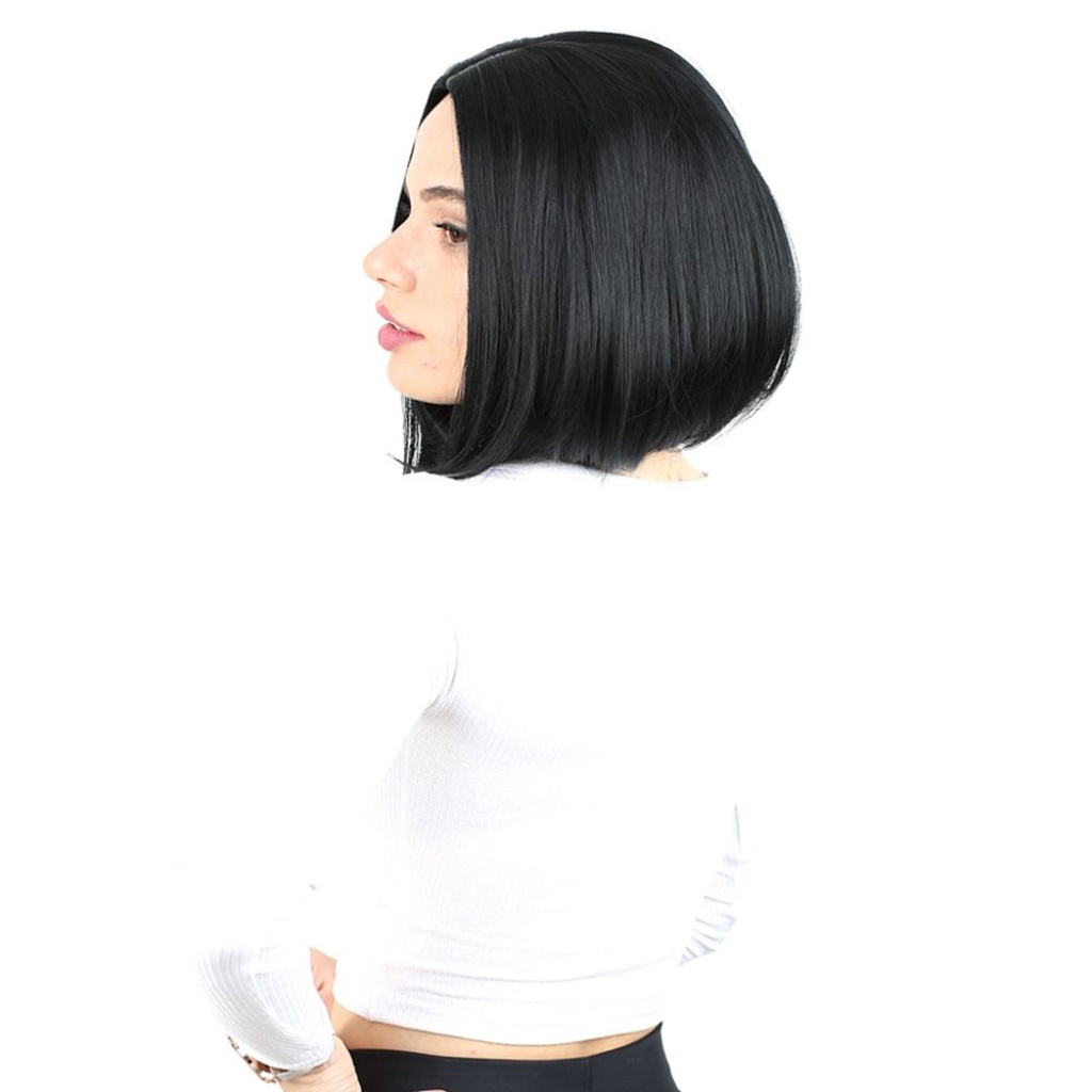Kahkülsüz Düz Kısa Fiber Sentetik Peruk - Siyah