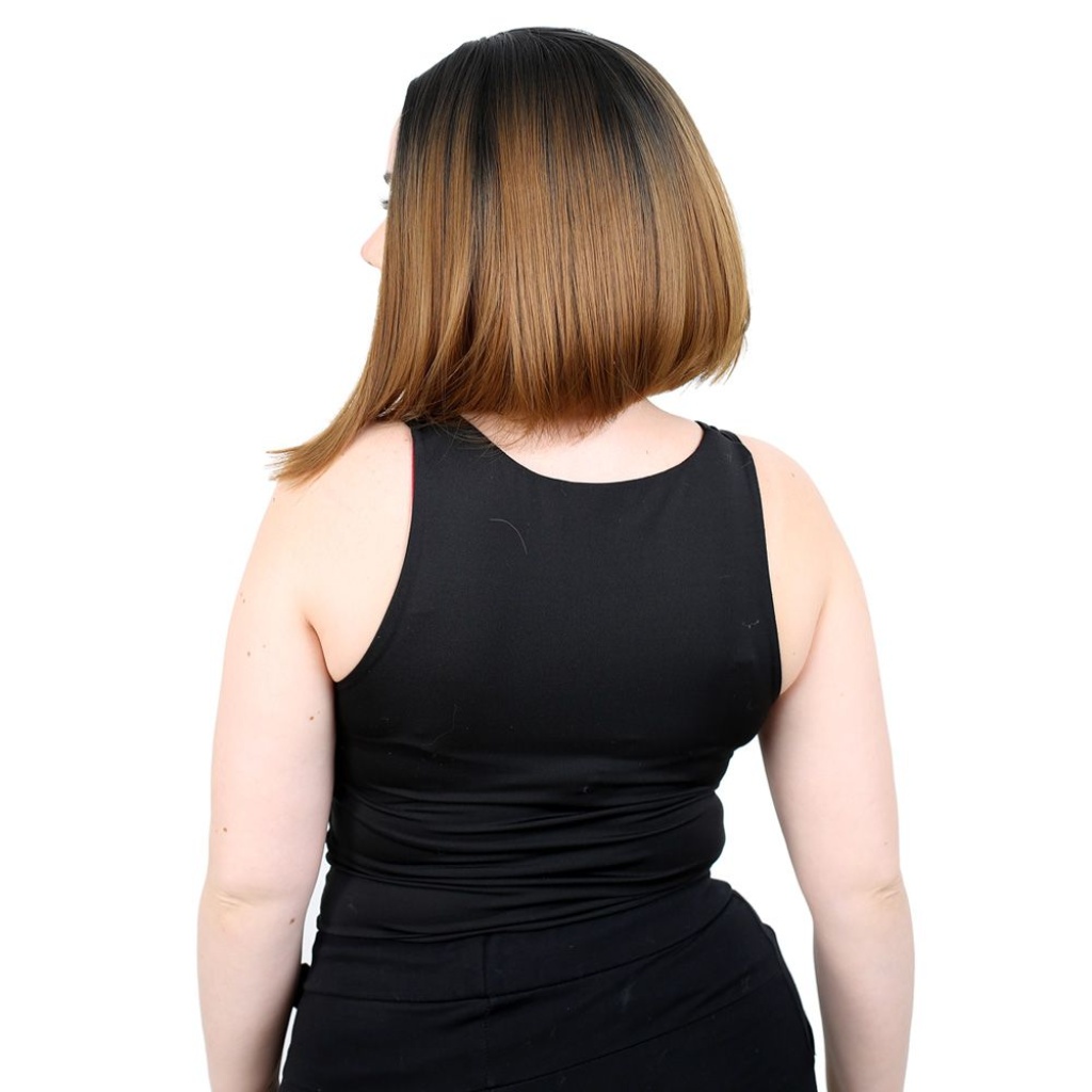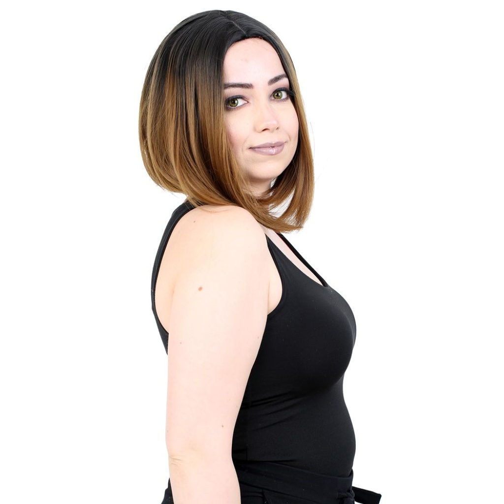 Kahkülsüz Düz Kısa Fiber Sentetik Peruk - Siyah / Karamel Ombreli