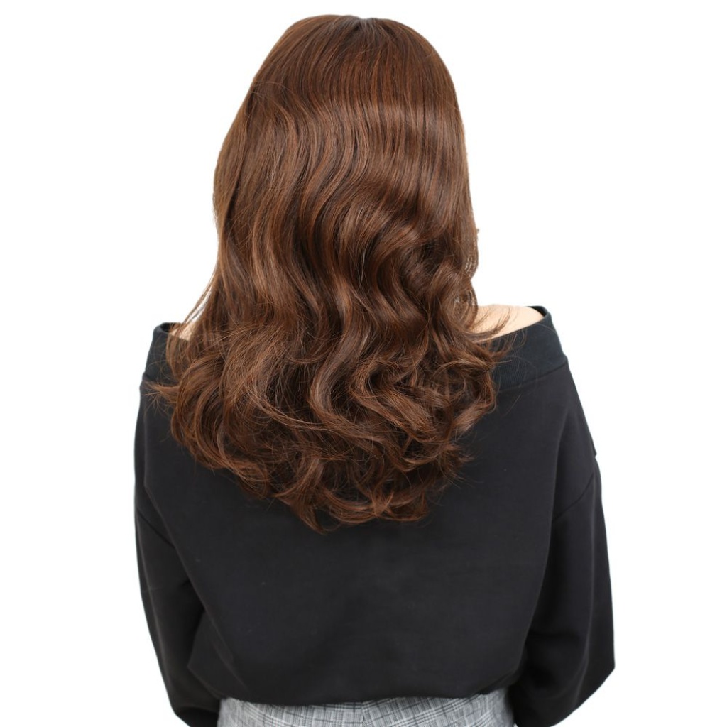 Kahkülsüz Fiber Sentetik Orta Boy Dalgalı Peruk - Kahve Karamel