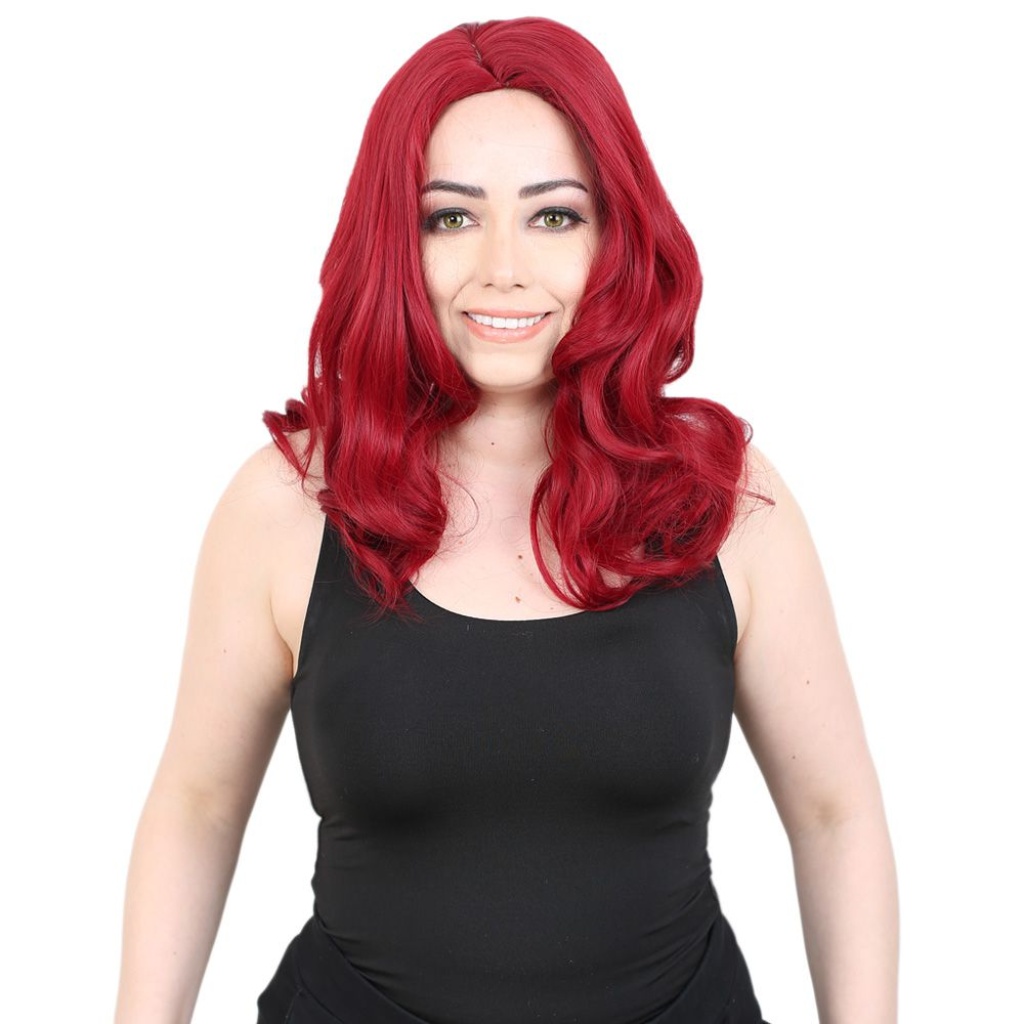 Kahkülsüz Fiber Sentetik Orta Boy Dalgalı Peruk - Kızıl