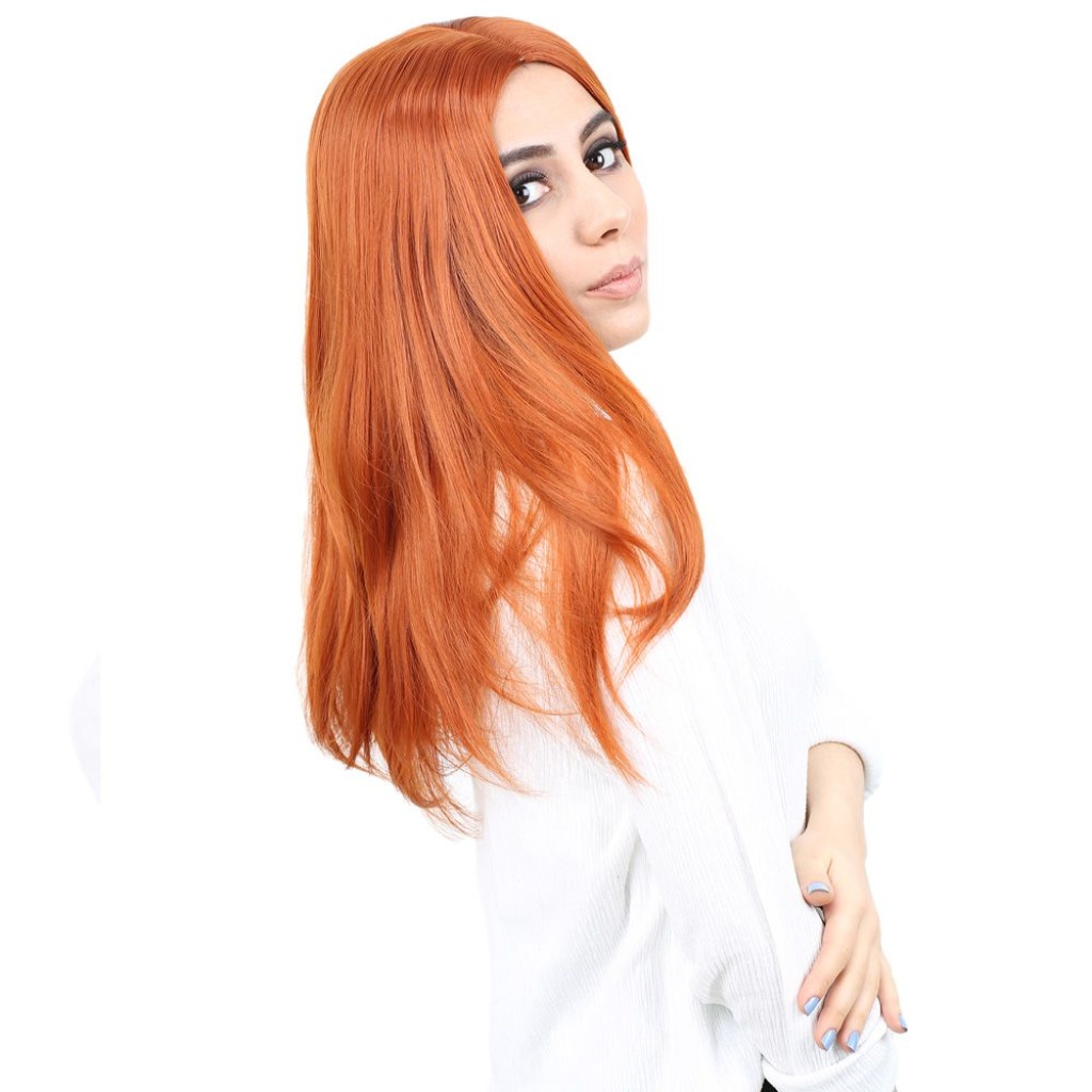 Kahkülsüz Fiber Sentetik Orta Boy Düz Peruk - Bakır