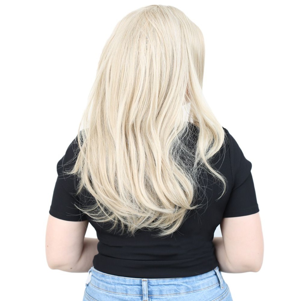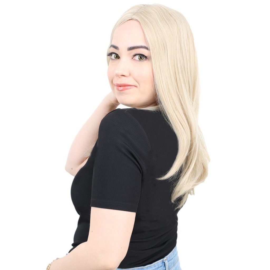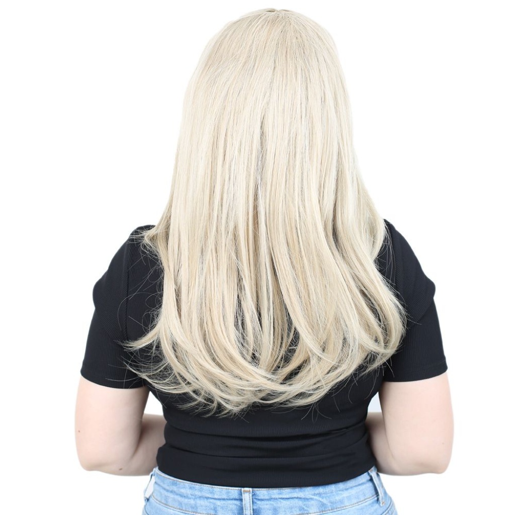 Kahkülsüz Fiber Sentetik Orta Boy Düz Peruk - Balköpüğü / Platin Röfleli
