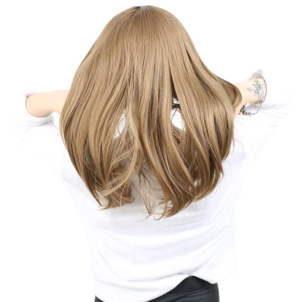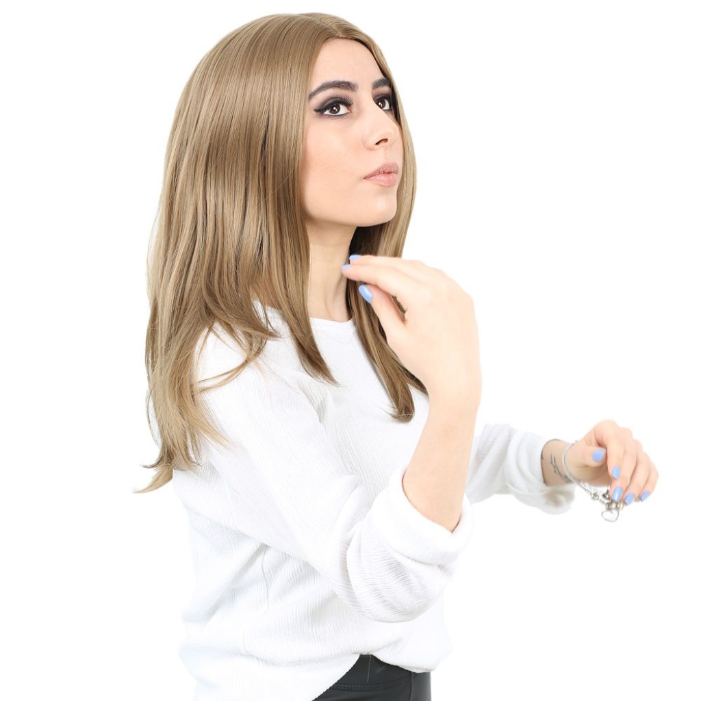 Kahkülsüz Fiber Sentetik Orta Boy Düz Peruk - Bebek Kumralı
