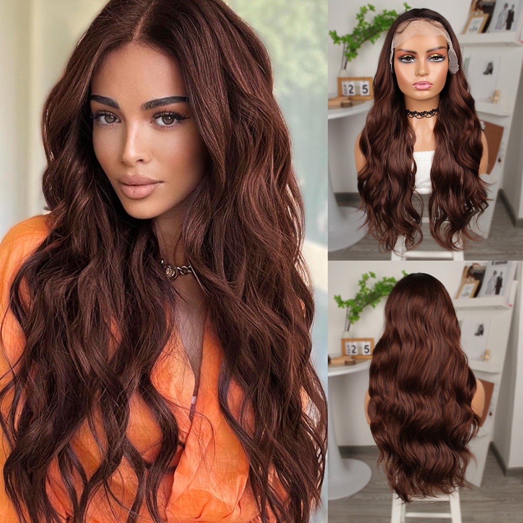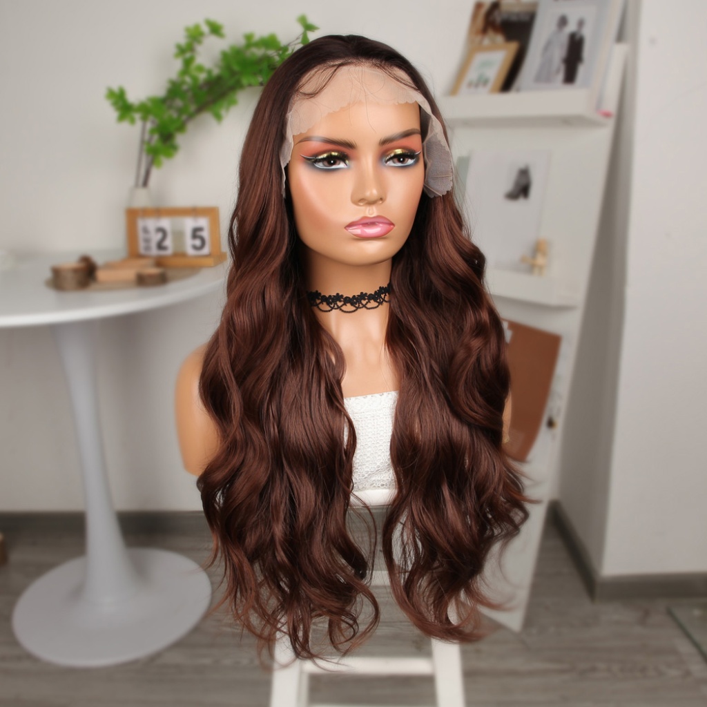 Kahve Karamel Geniş Dalgalı Fiber Sentetik Tül Peruk