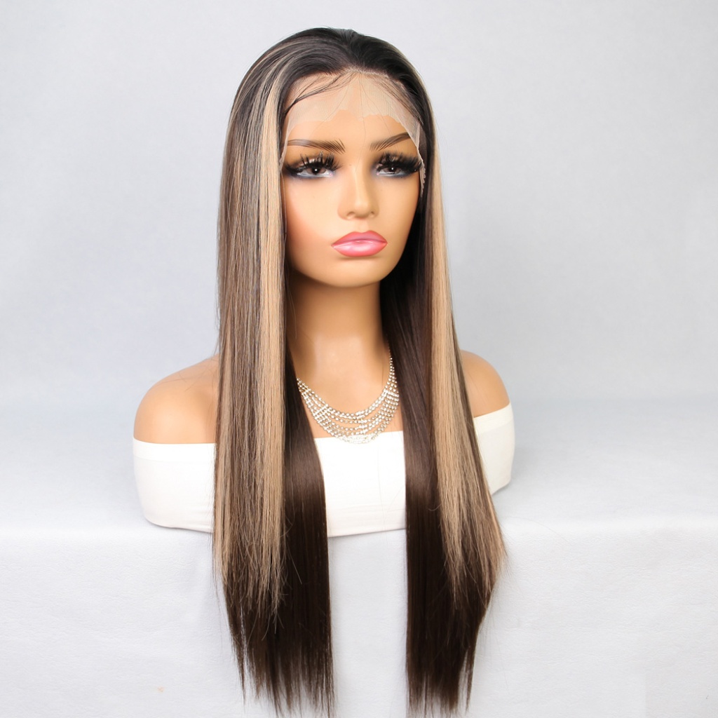 Kahverengi Balköpüğü Işıltılı Fiber Sentetik Düz Tül Peruk