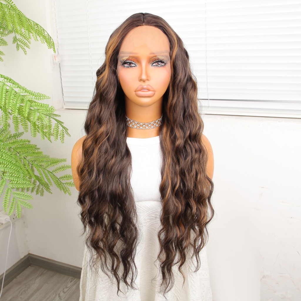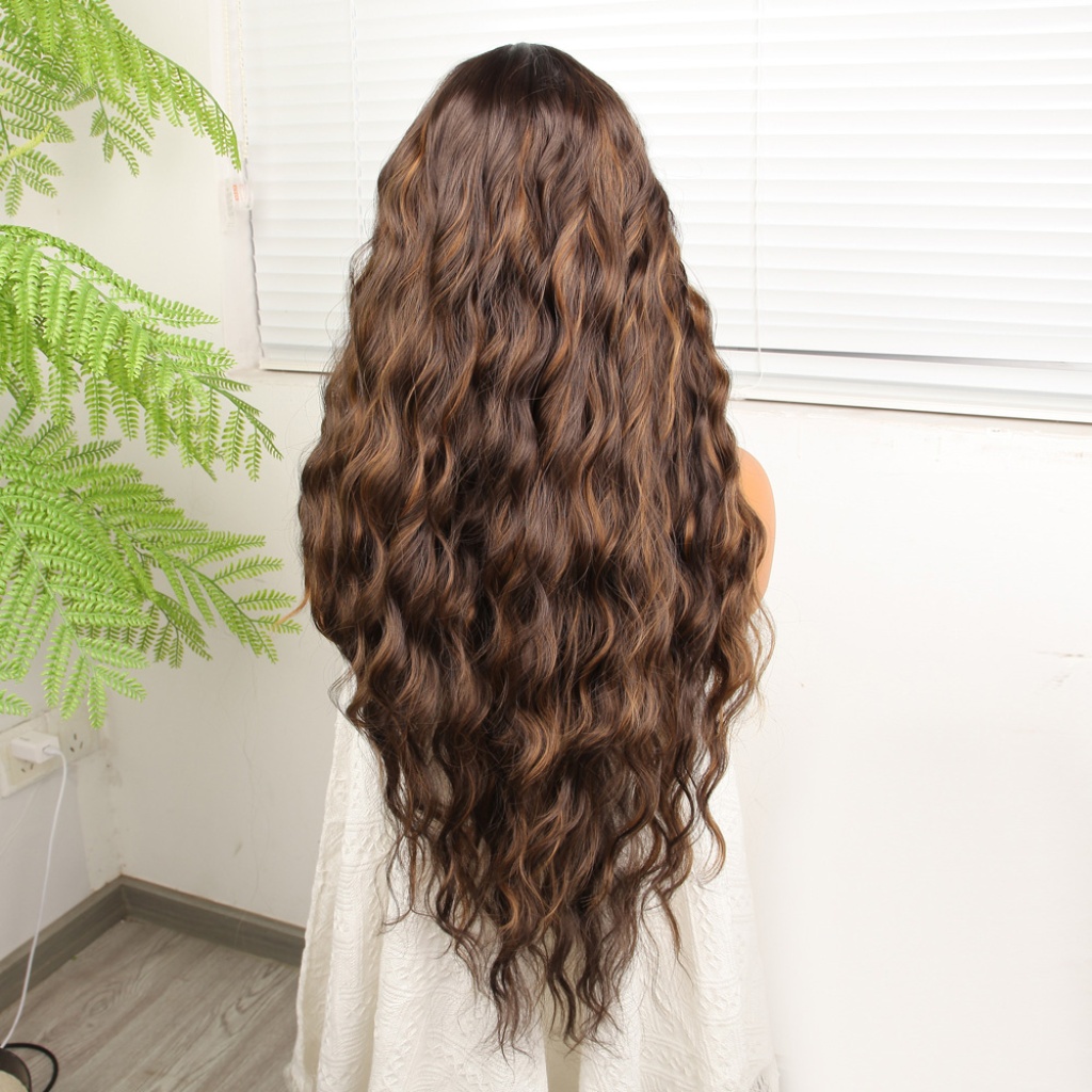 Kahverengi Balköpüğü Işıltılı Su Dalgalı Tül Peruk