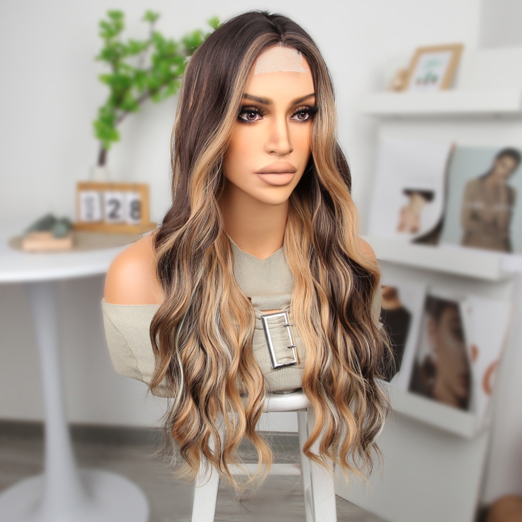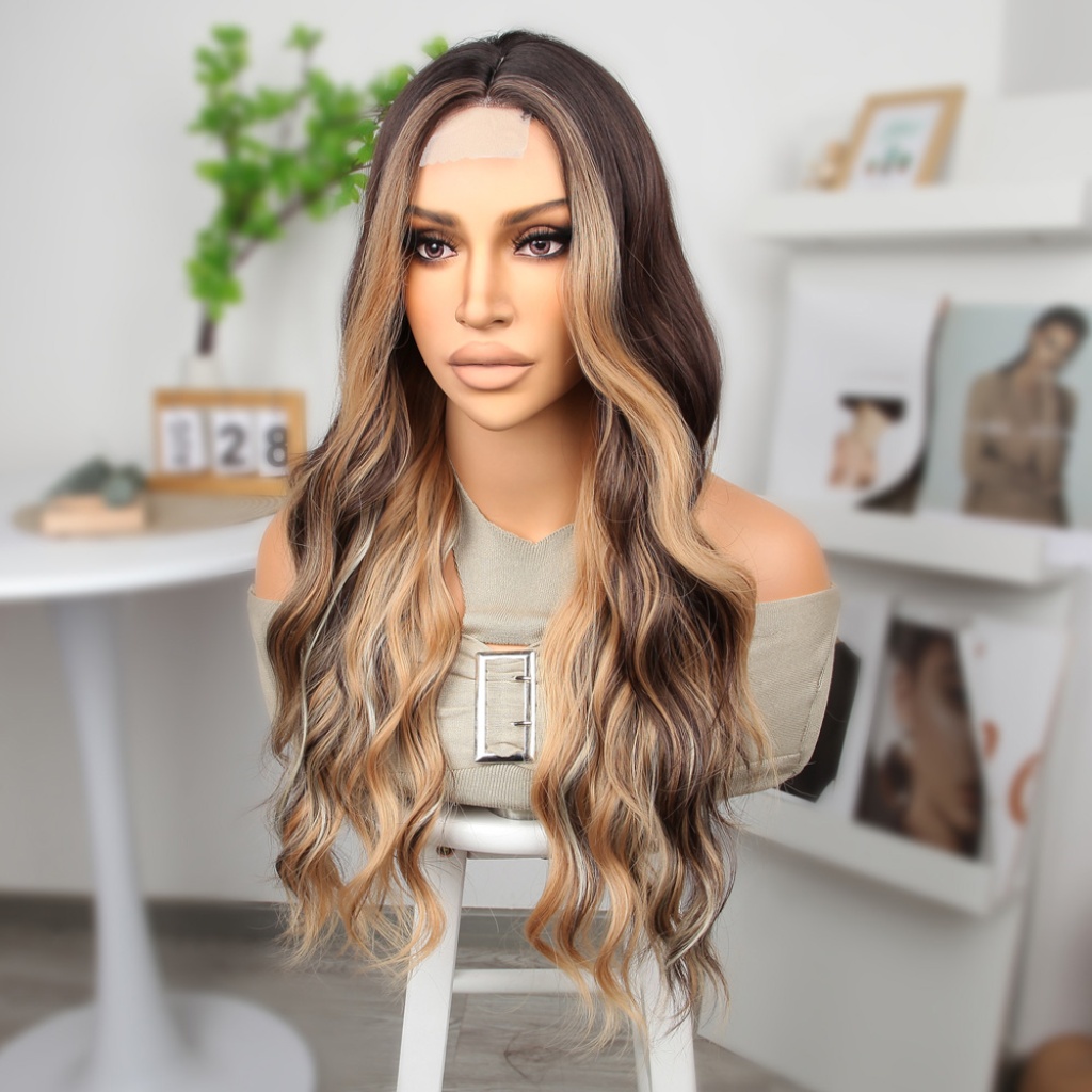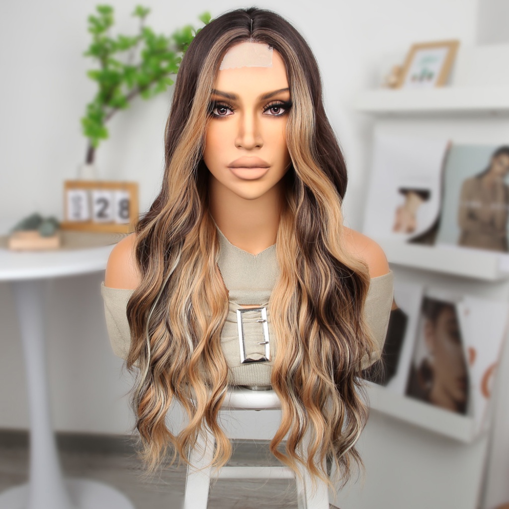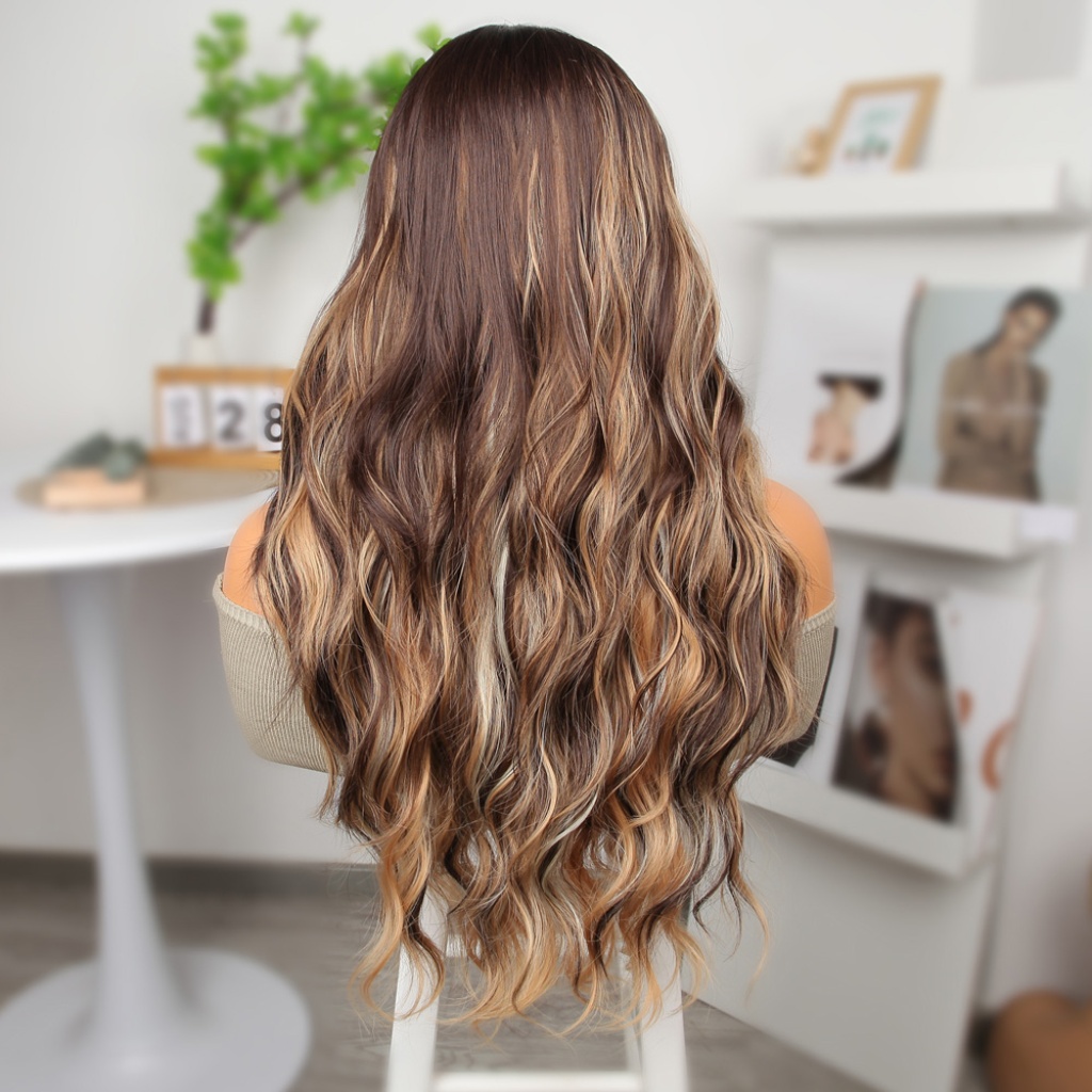 Kahverengi Platin ve Balköpüğü Işıltılı Dalgalı Tül Peruk