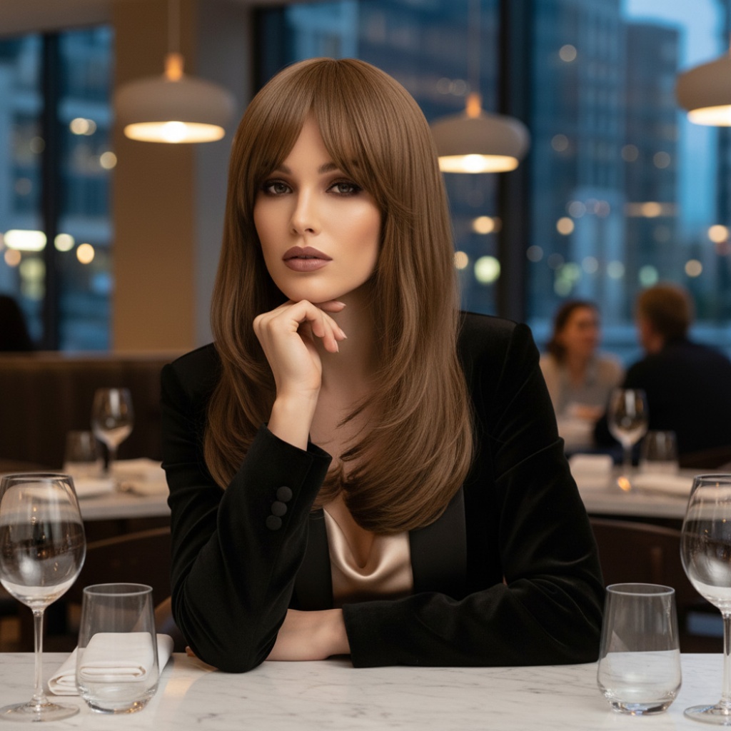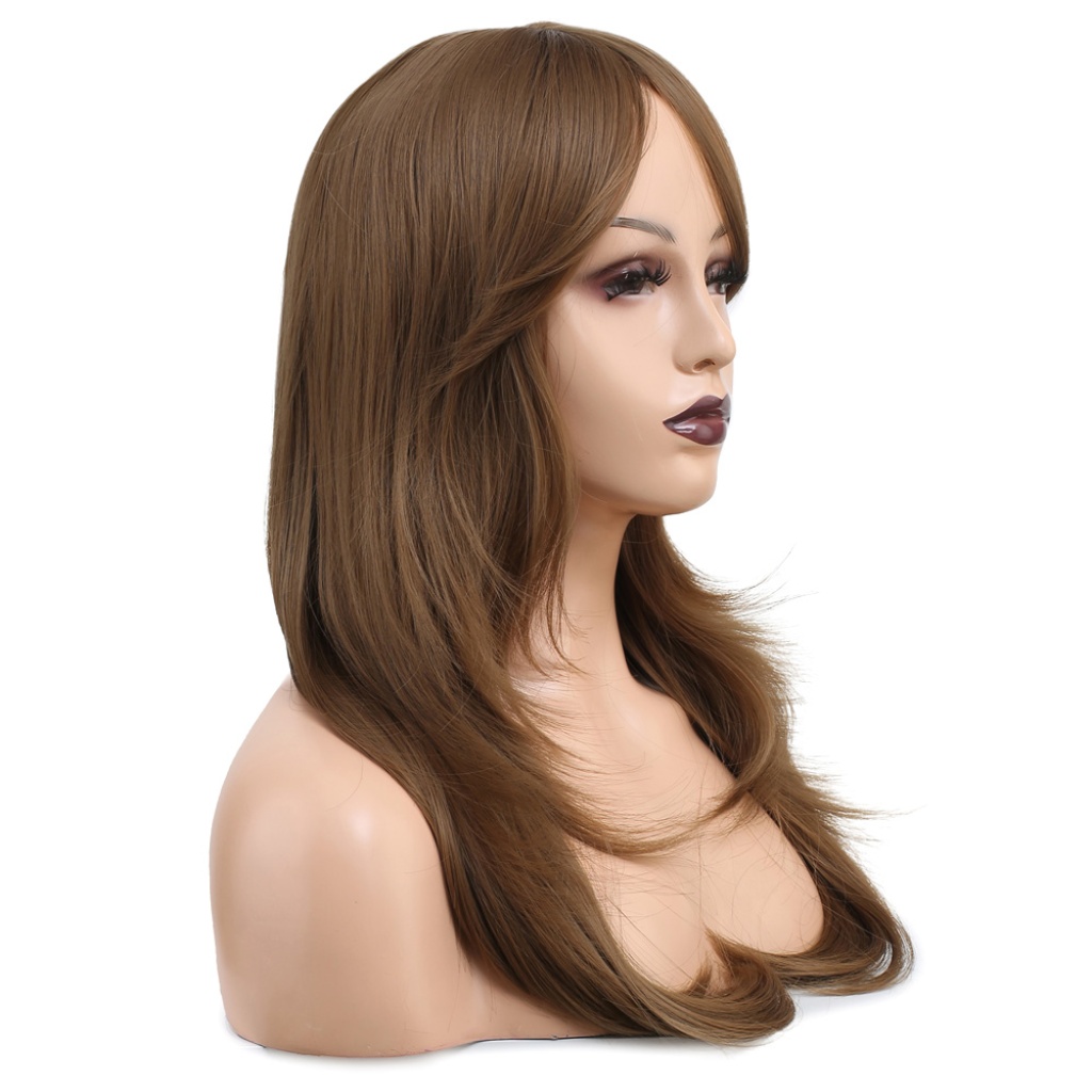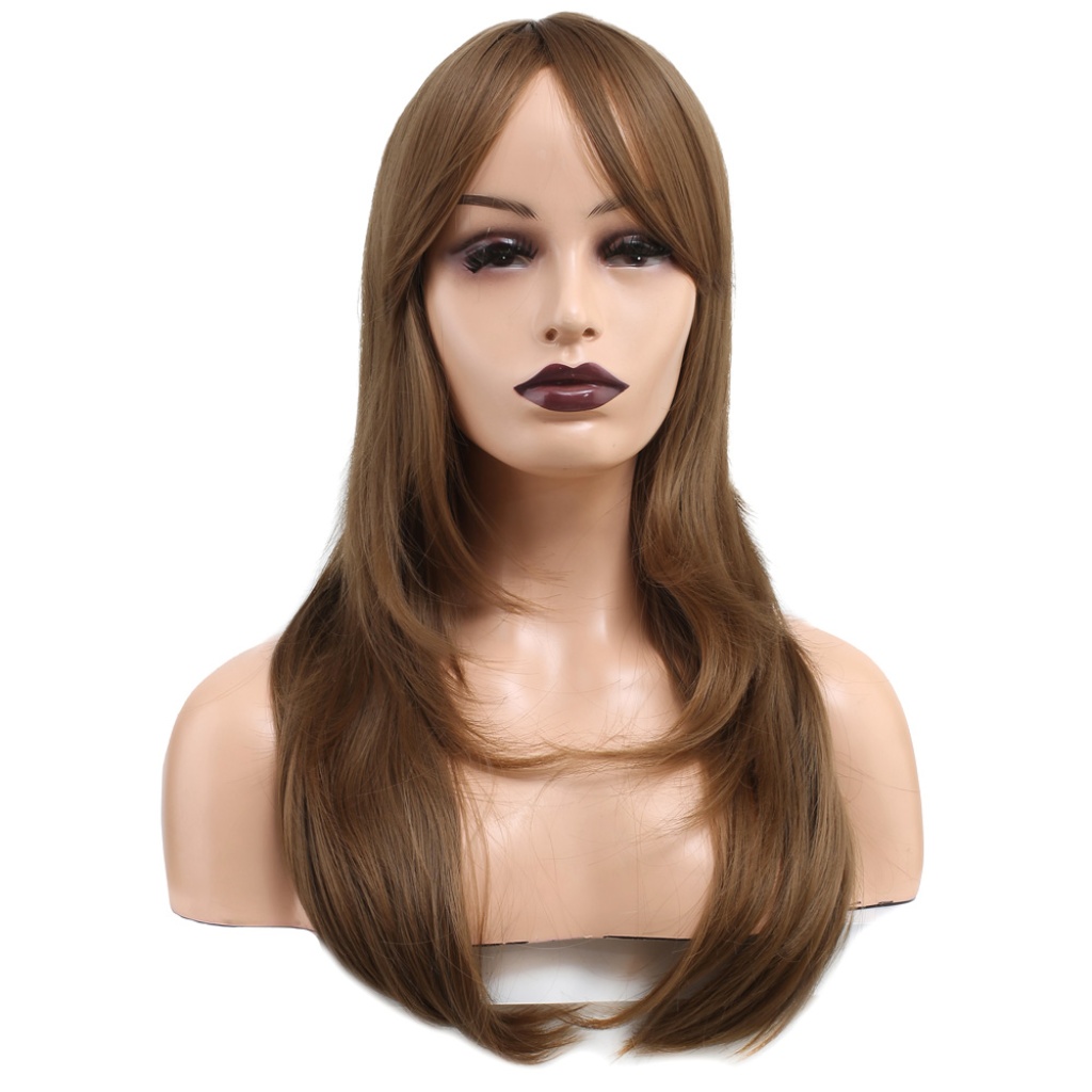 Katlı Kesim Perçemli Düz Fiber Sentetik Orta Boy Peruk - Bebek Kumralı