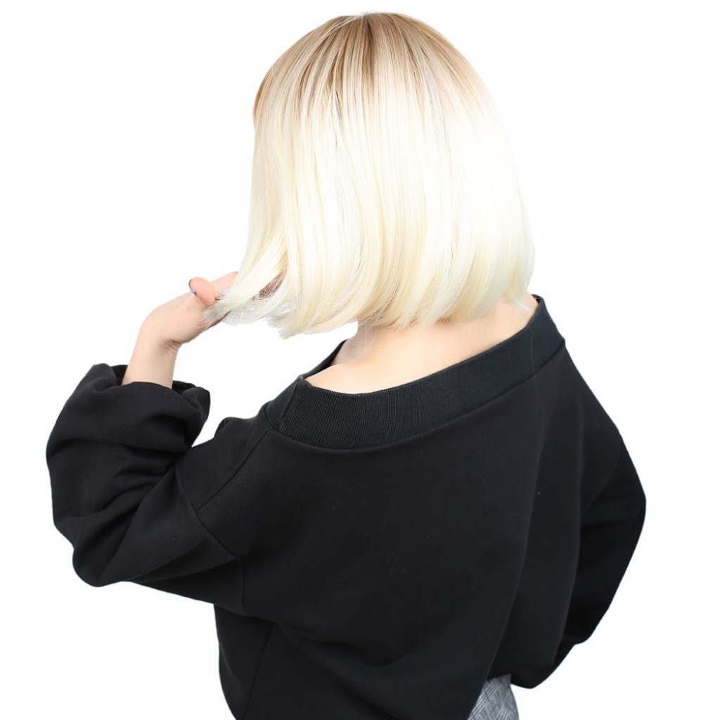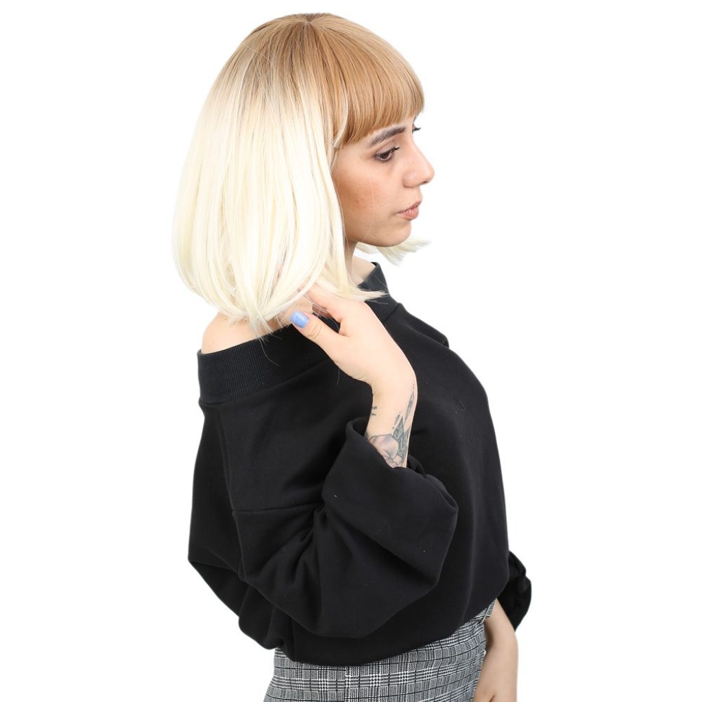 Kısa Küt Perçemli Fiber Sentetik Peruk - Balköpüğü / Platin Ombreli