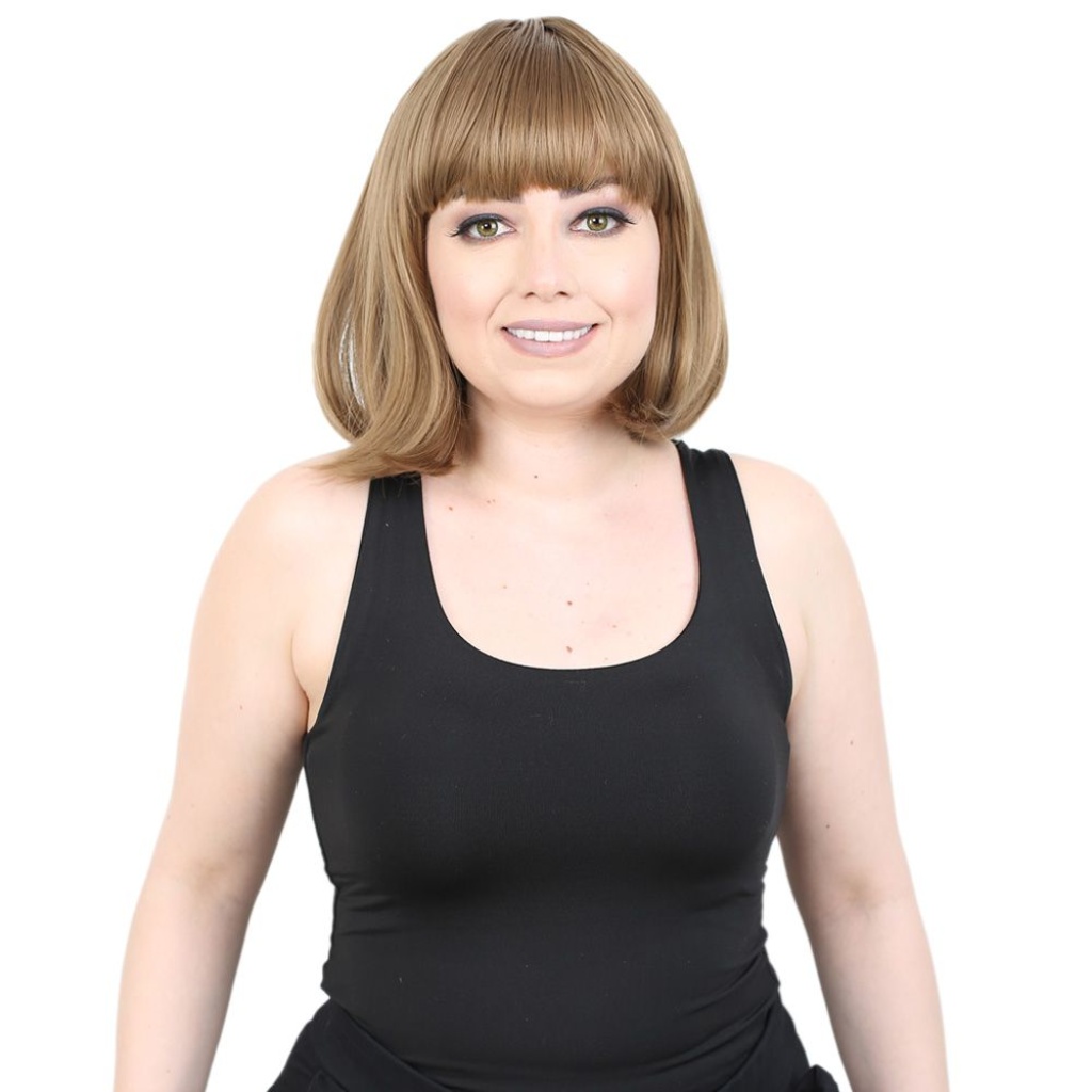 Kısa Küt Perçemli Fiber Sentetik Peruk - Bebek Kumralı