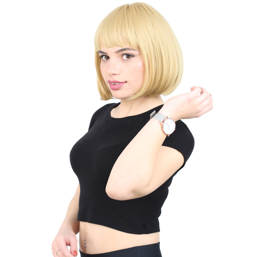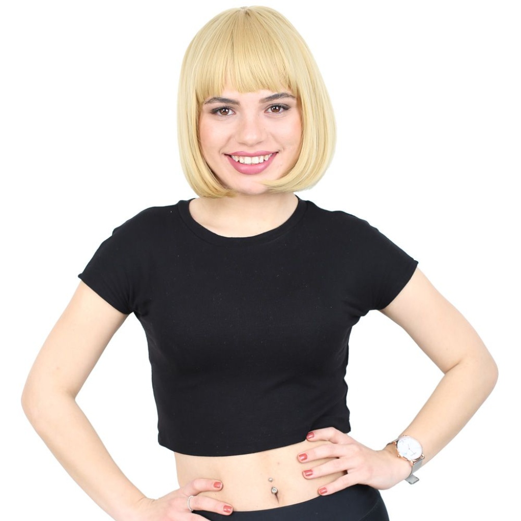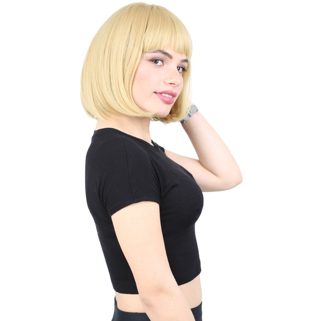 Kısa Küt Perçemli Fiber Sentetik Peruk - Sarı