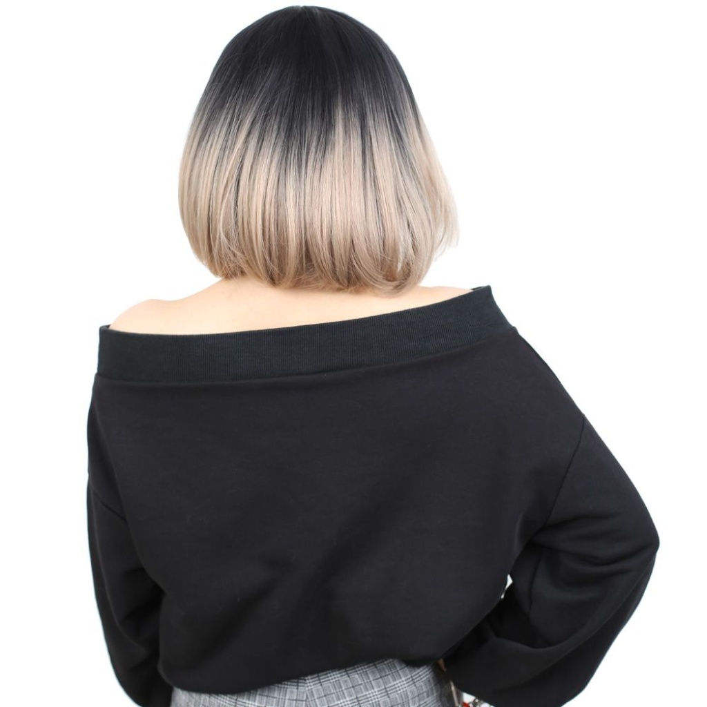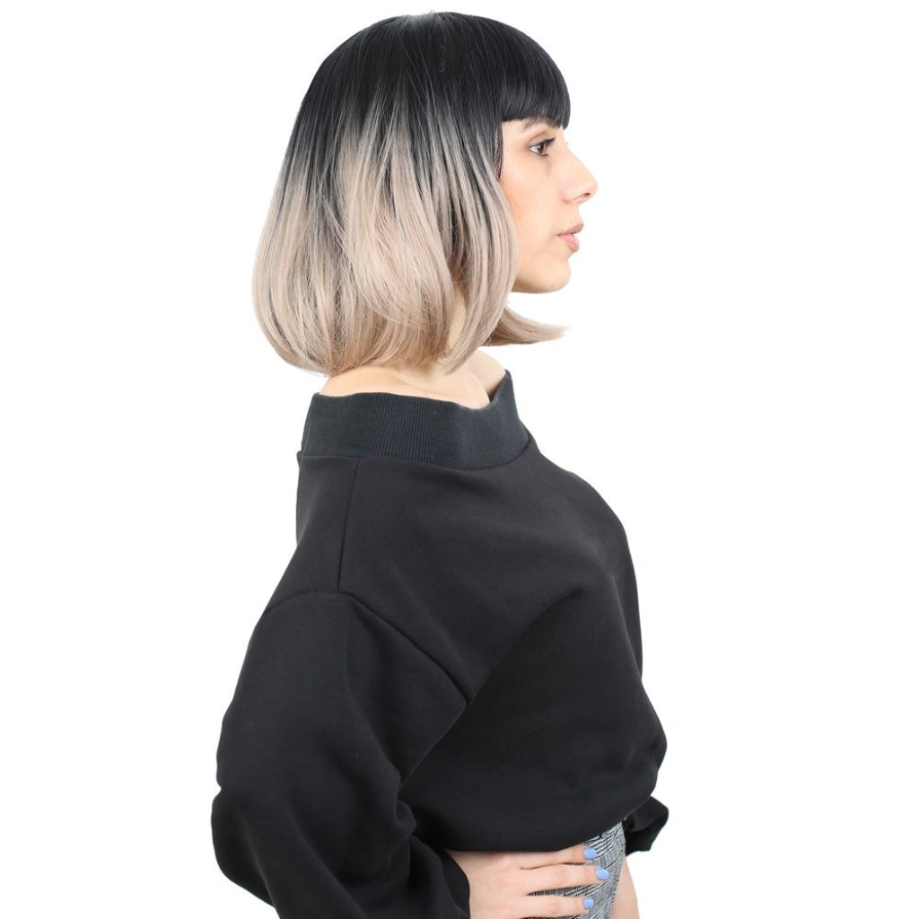 Kısa Küt Perçemli Fiber Sentetik Peruk - Siyah / Küllü Bebek Sarı Ombreli