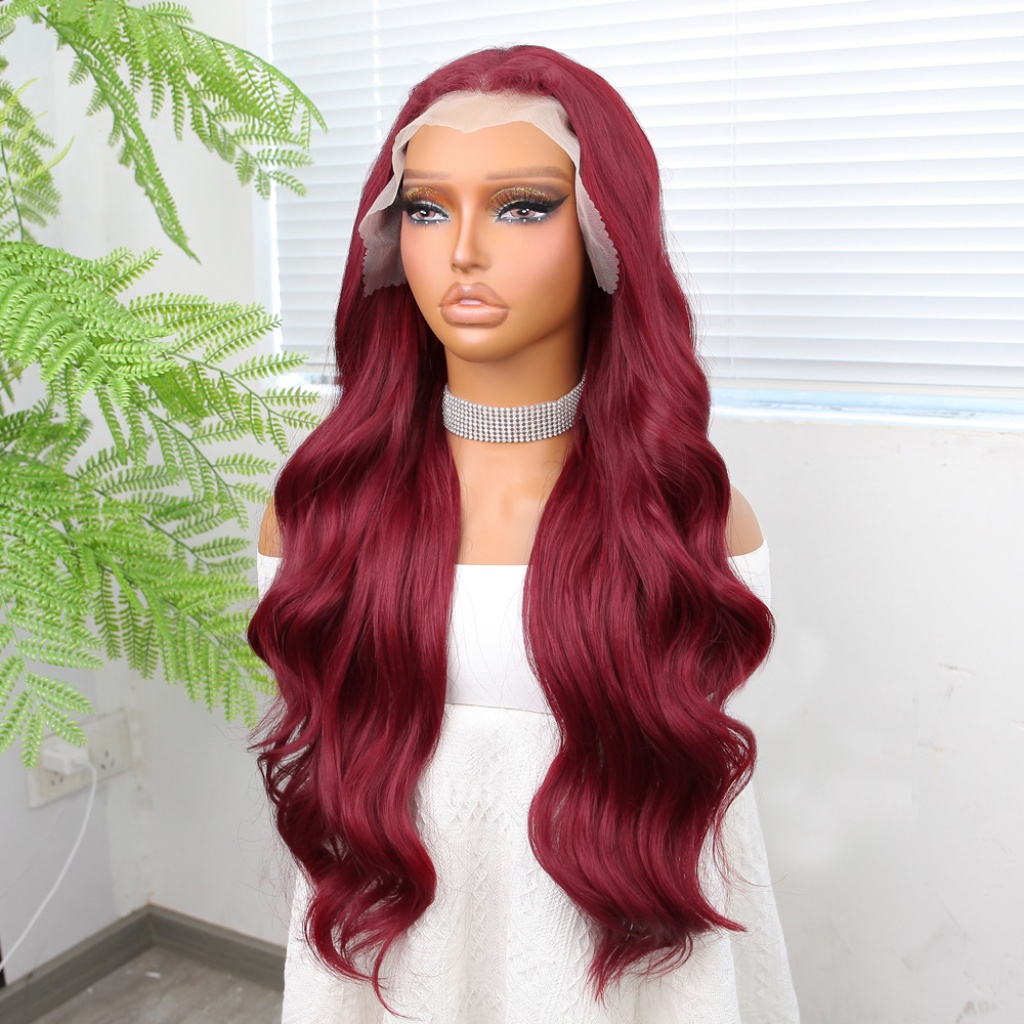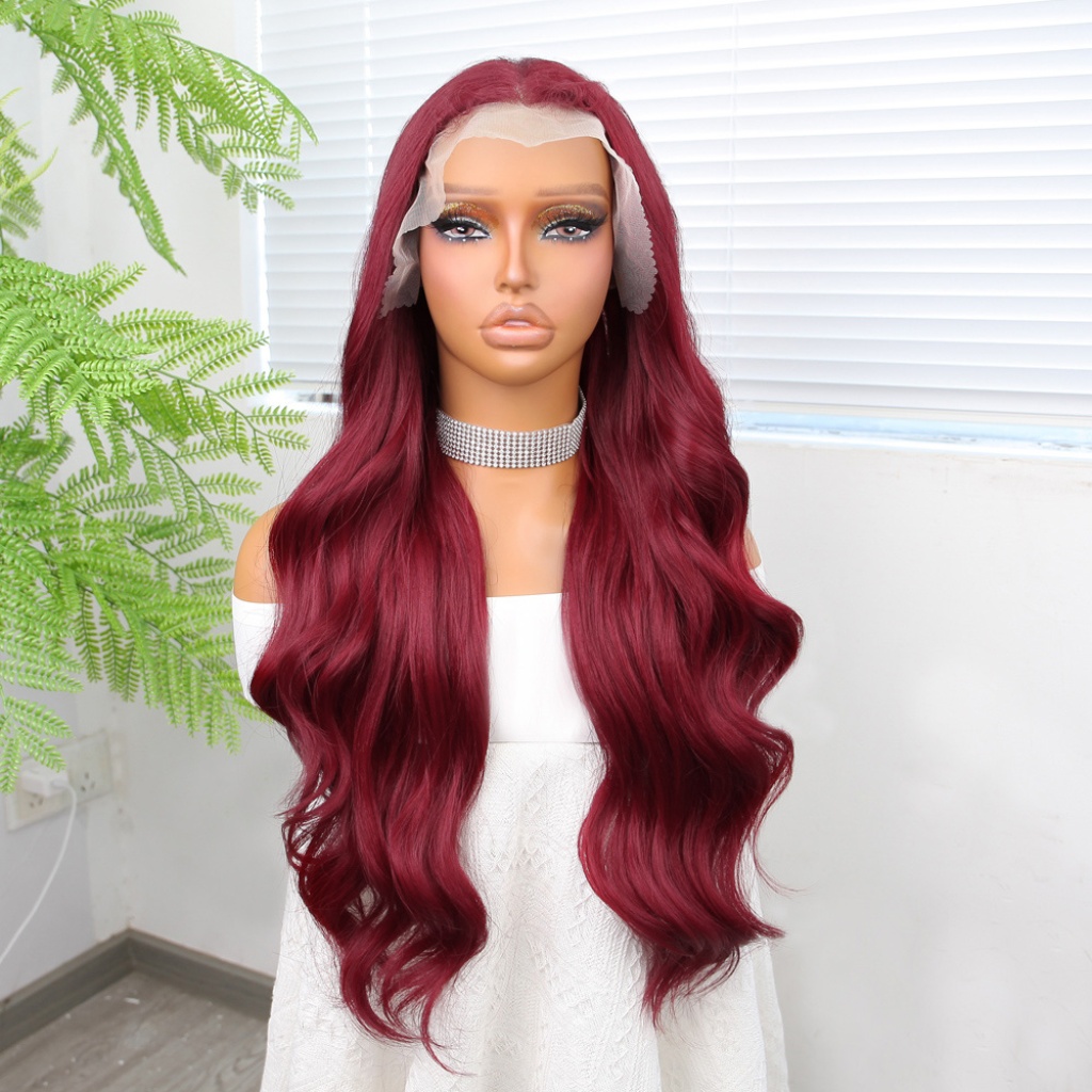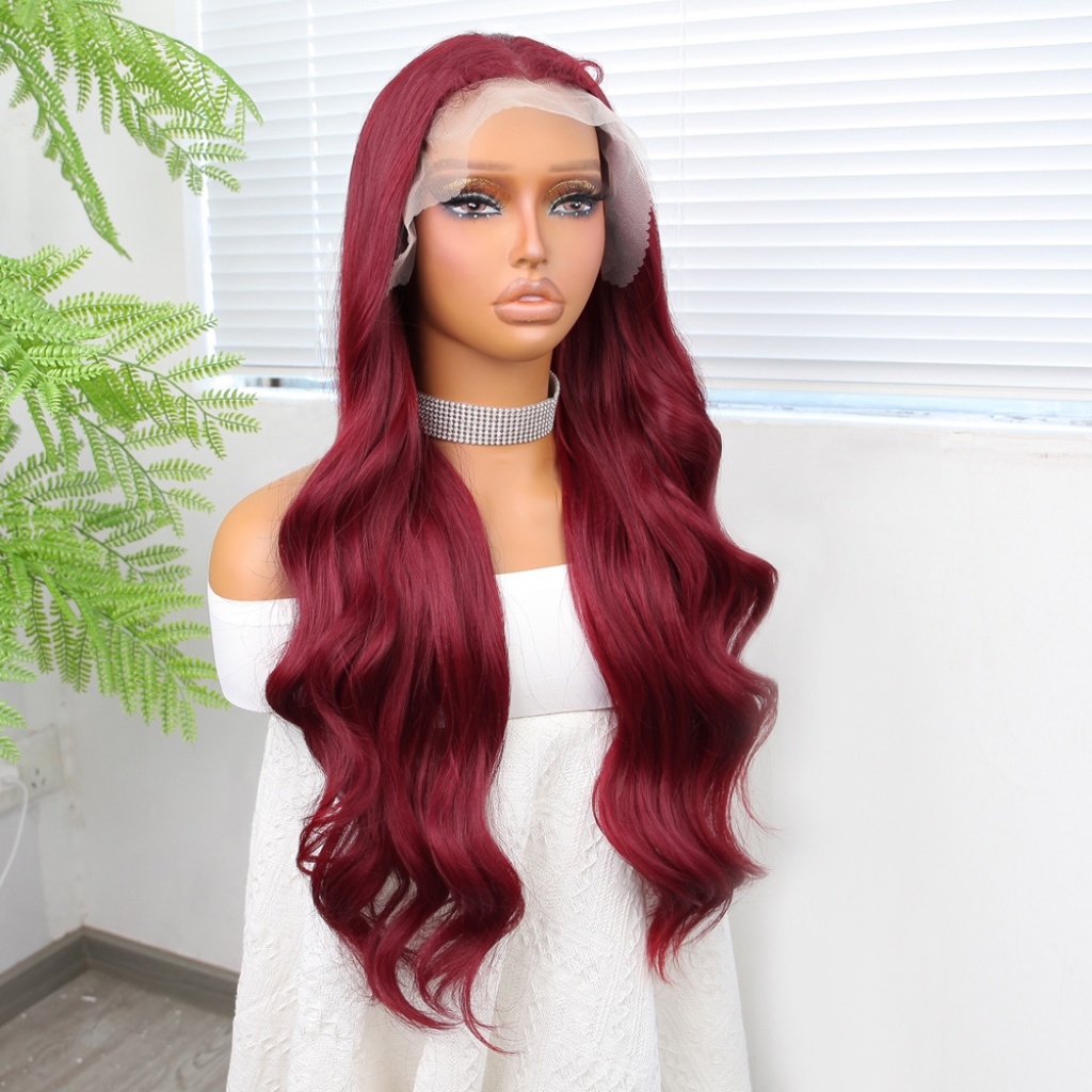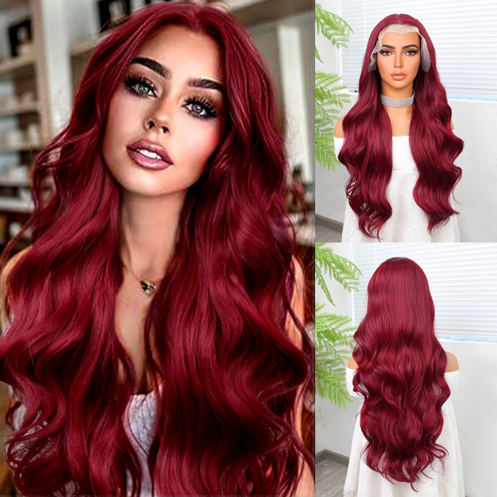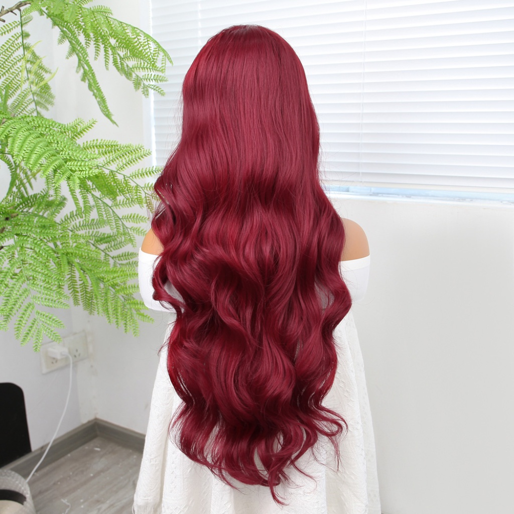 Kızıl Fiber Sentetik Geniş Dalgalı Tül Peruk