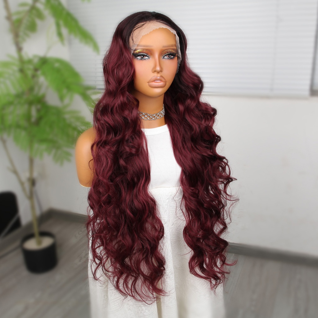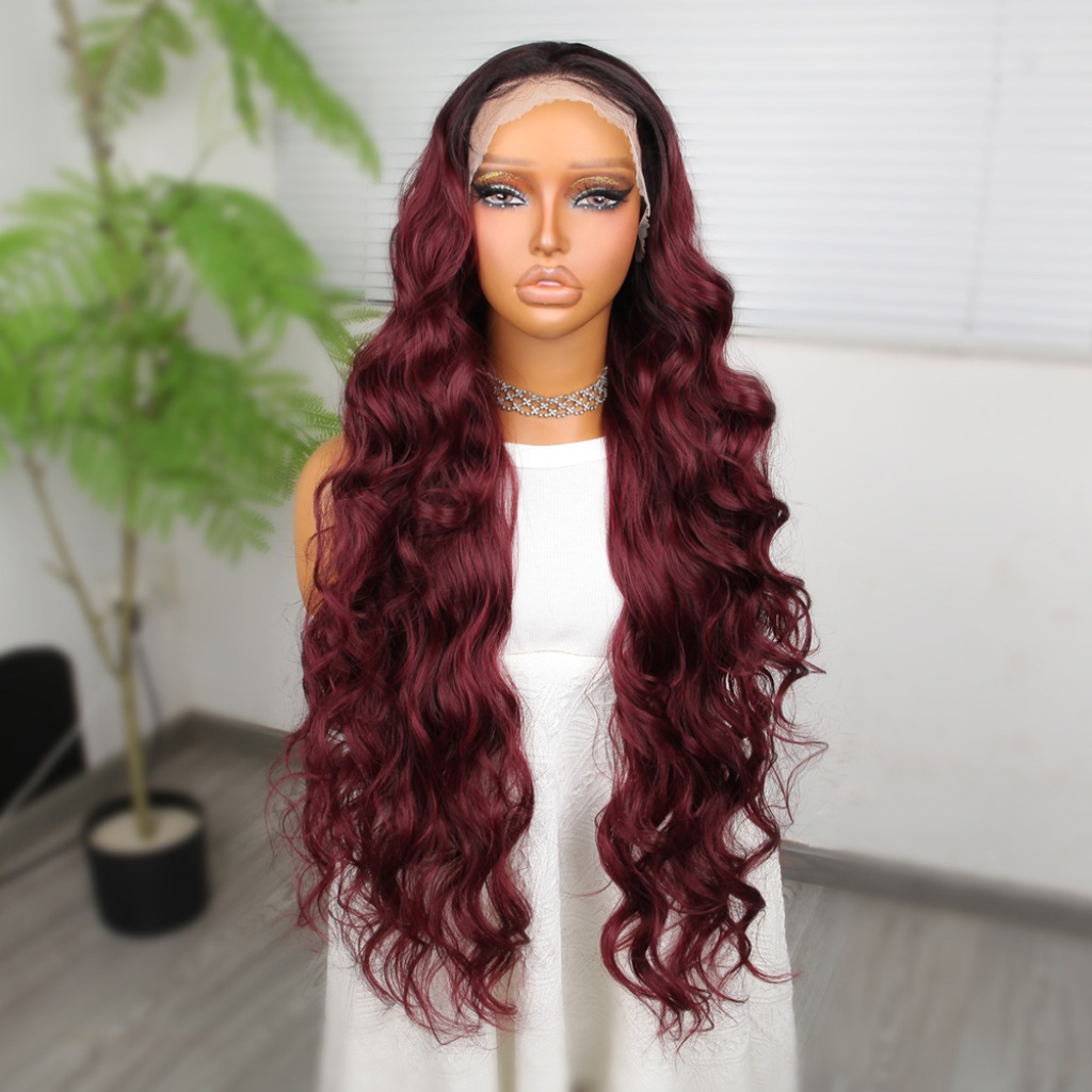 Kızıl Kahve Ekstra Uzun Fiber Sentetik Dalgalı Tül Peruk