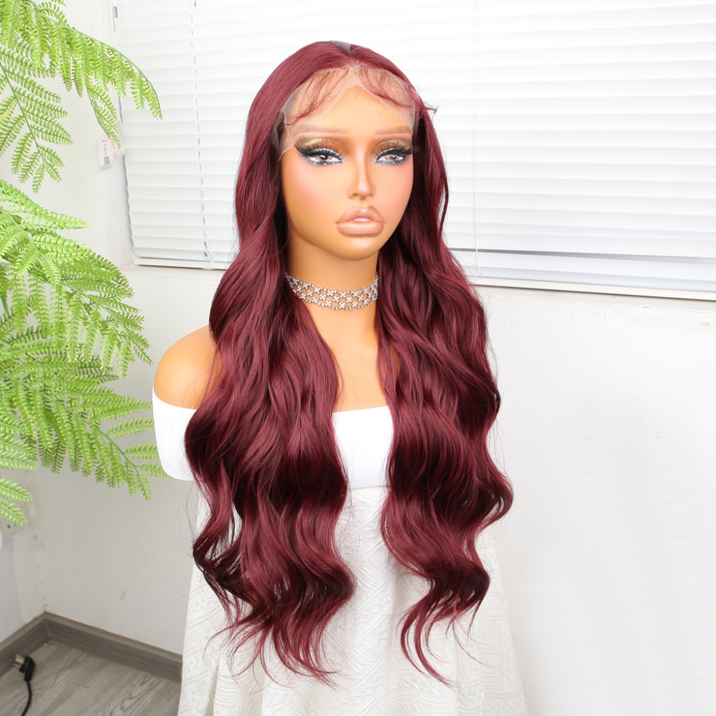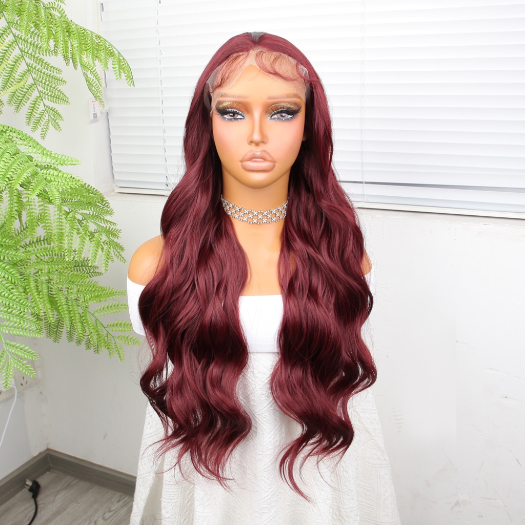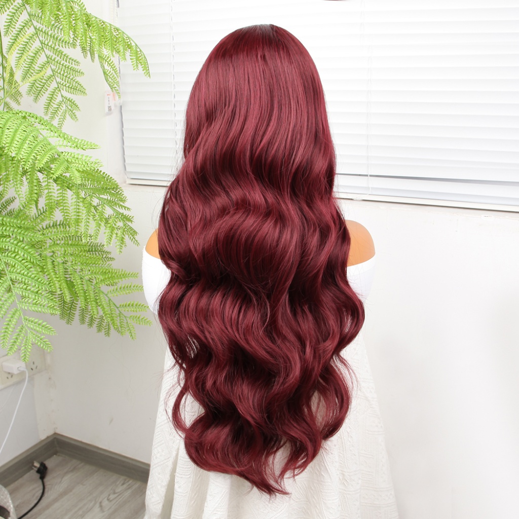 Kızıl Kahve Fiber Sentetik Geniş Dalgalı Tül Peruk