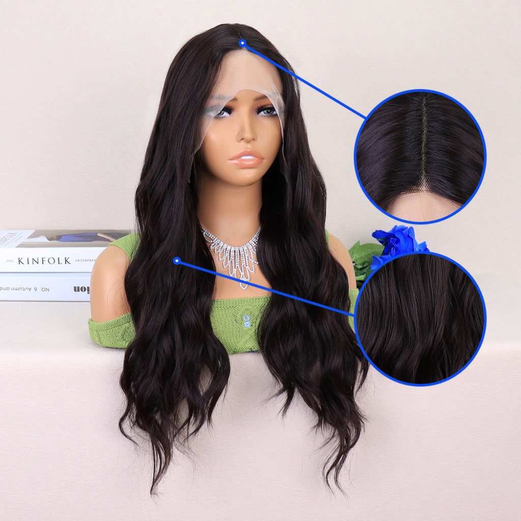 Koyu Kahverengi Su Dalgalı Yoğun Tül Peruk