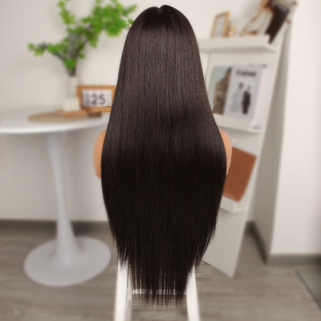 Koyu Kestane Ekstra Uzun Fiber Sentetik Düz Tül Peruk