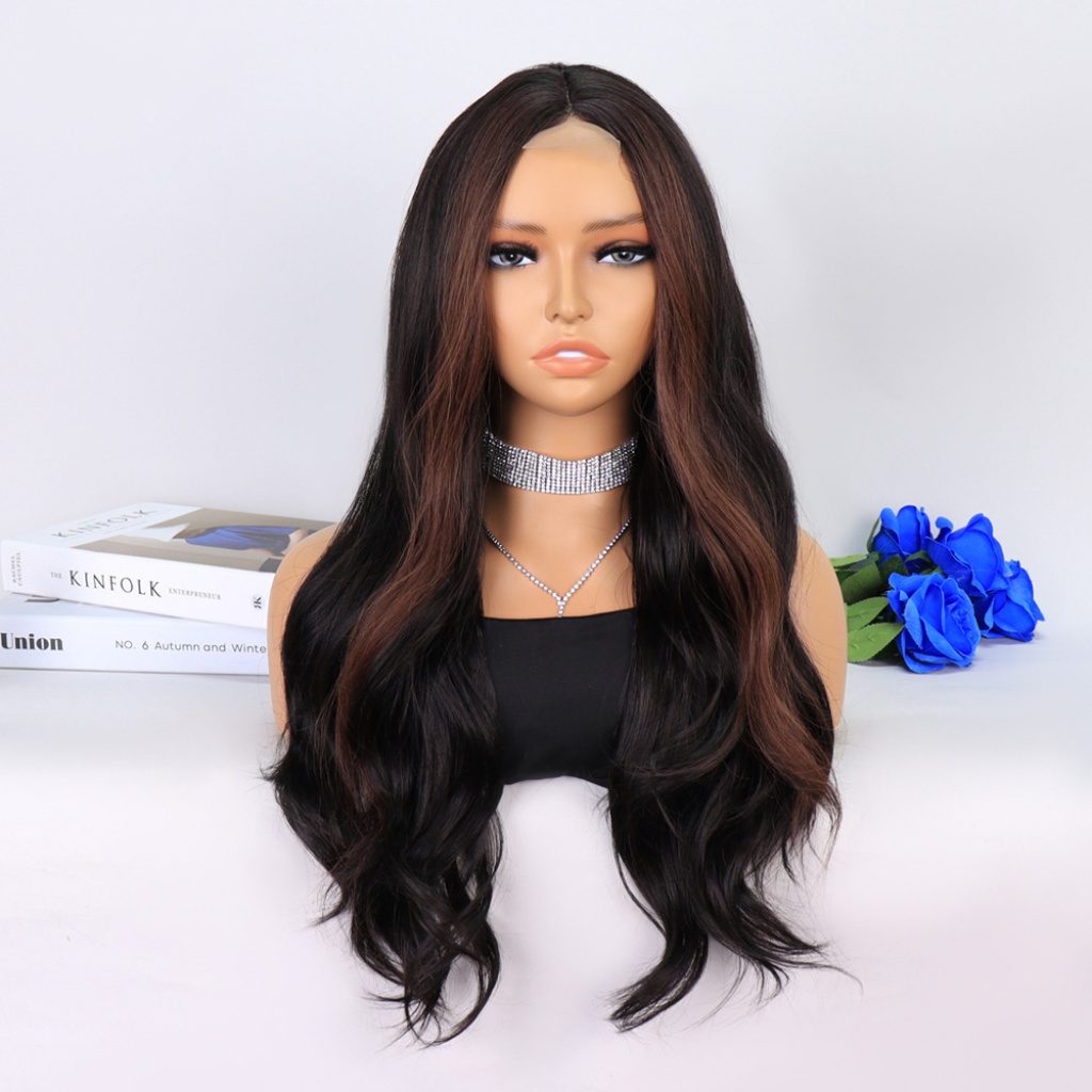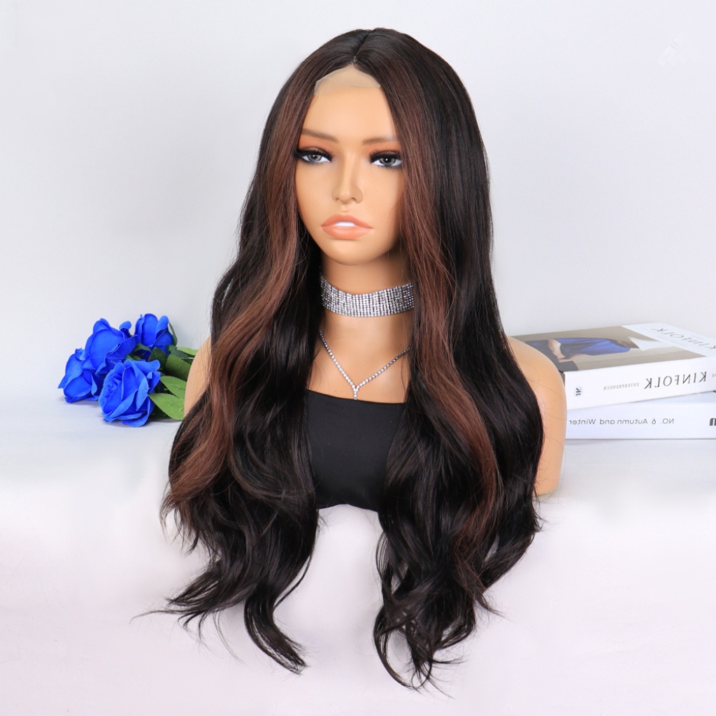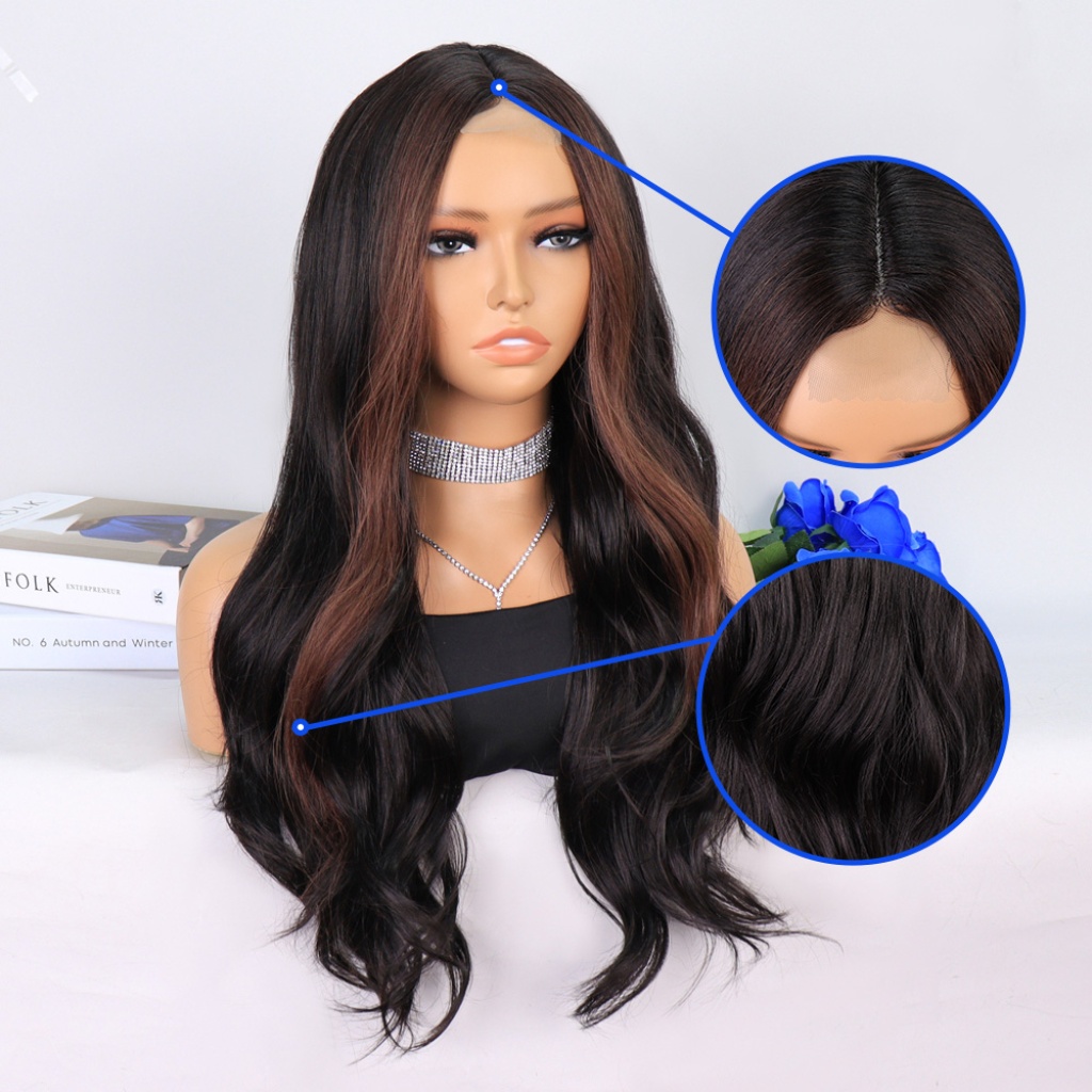 Koyu Kestane Perçemler Kahverengi Tül Peruk