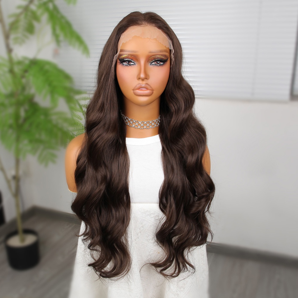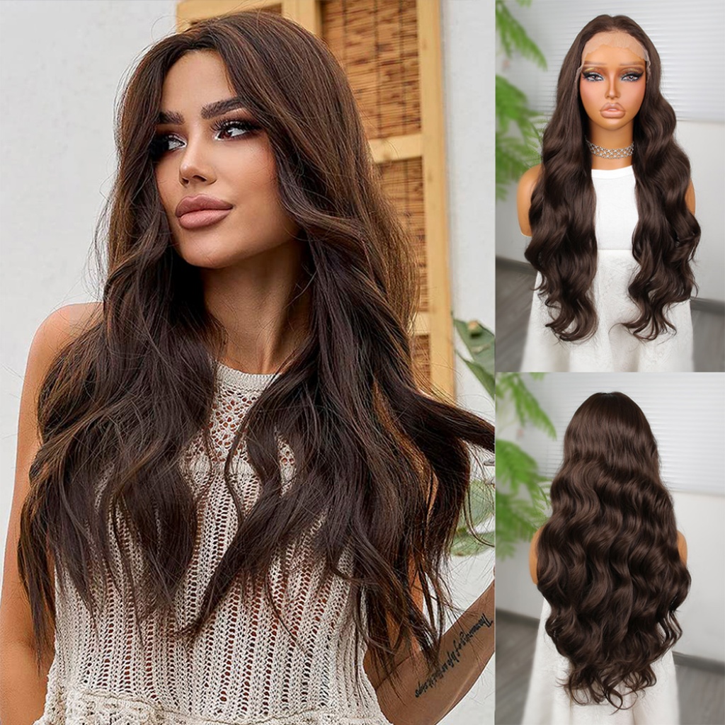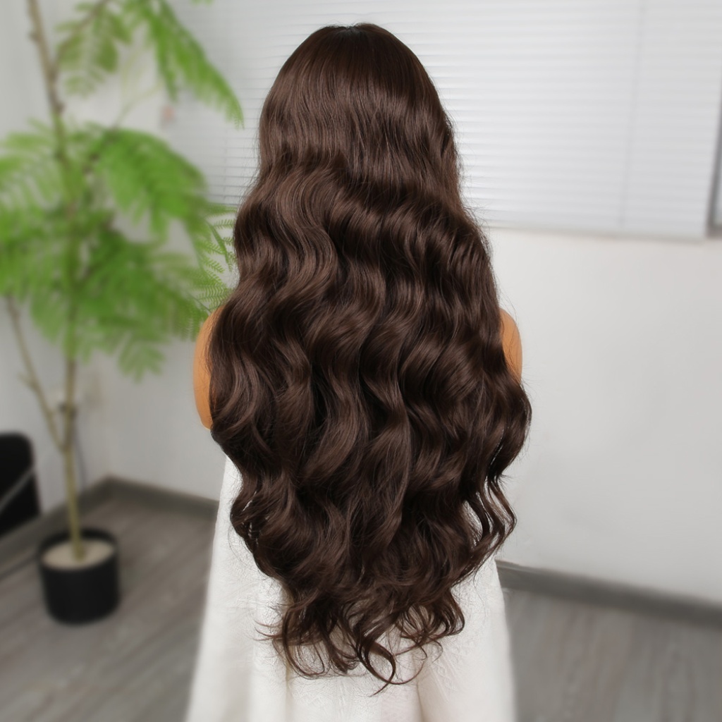 Koyu Kumral Dalgalı Fiber Sentetik Tül Peruk