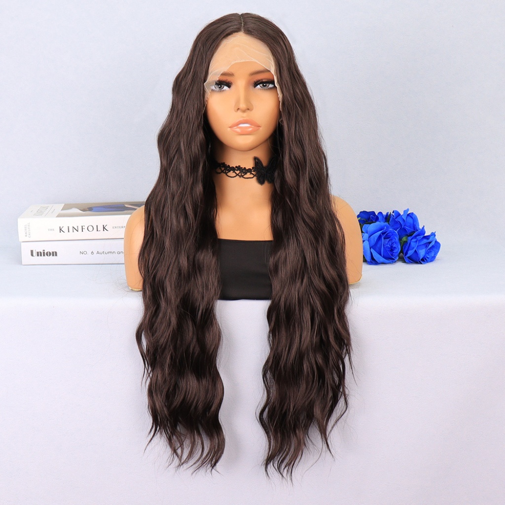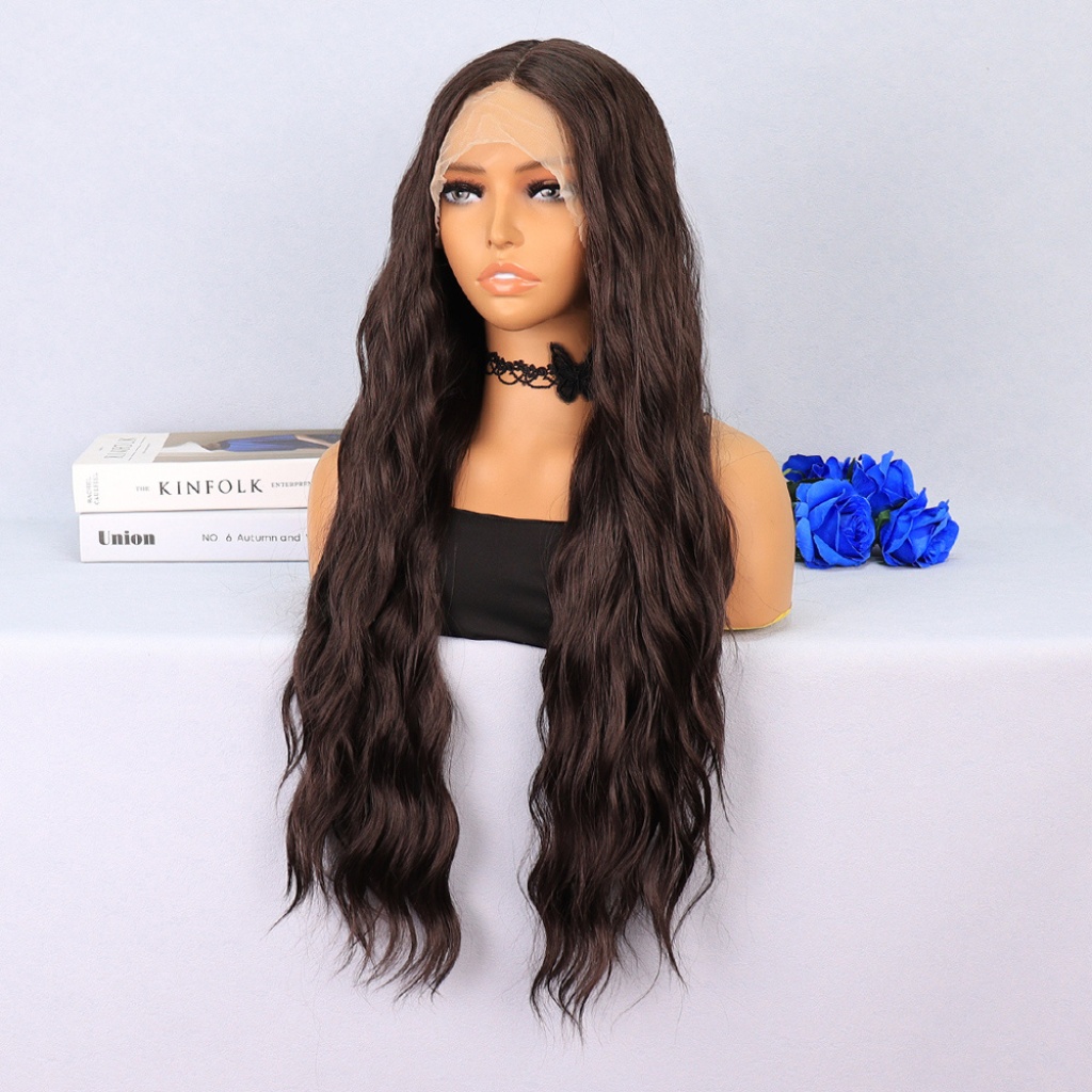 Koyu Kumral Dalgalı Uzun Boy Tül Peruk