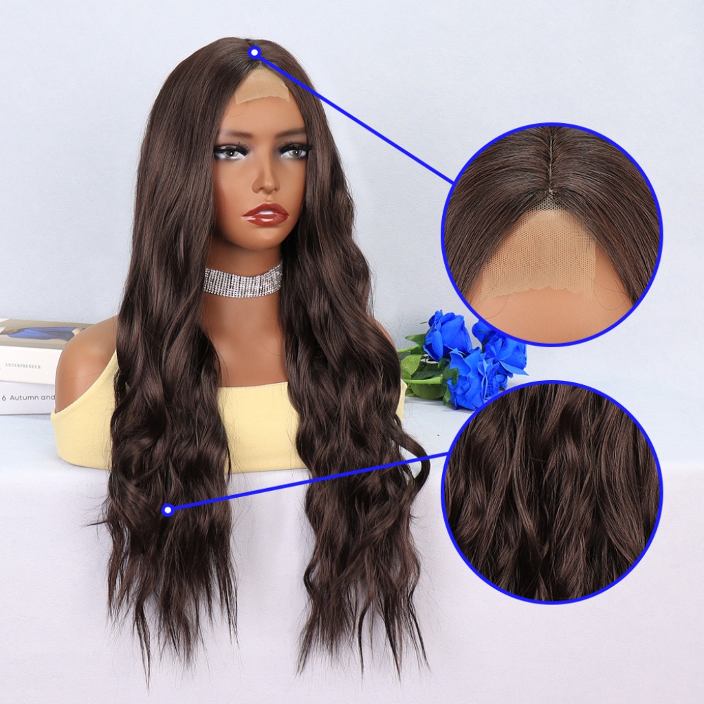 Koyu Kumral Dalgalı Uzun Tül Peruk