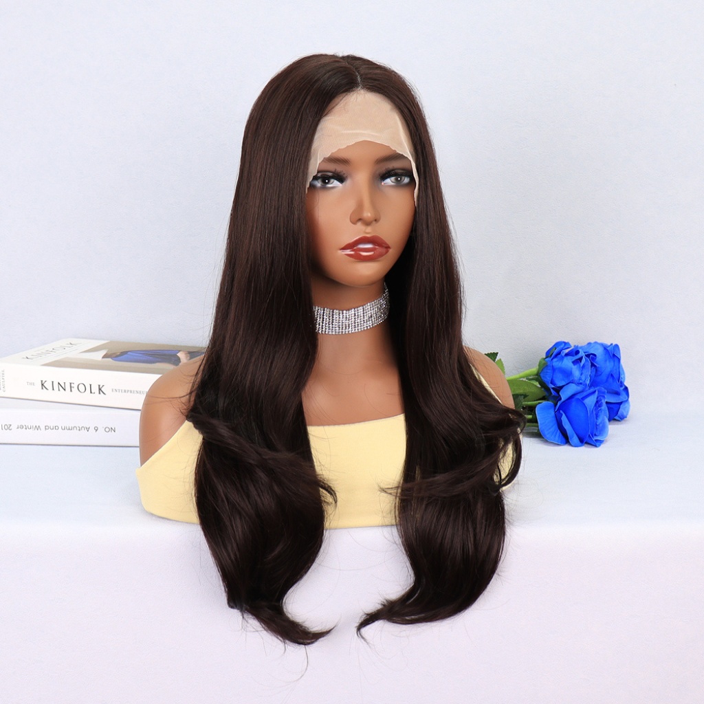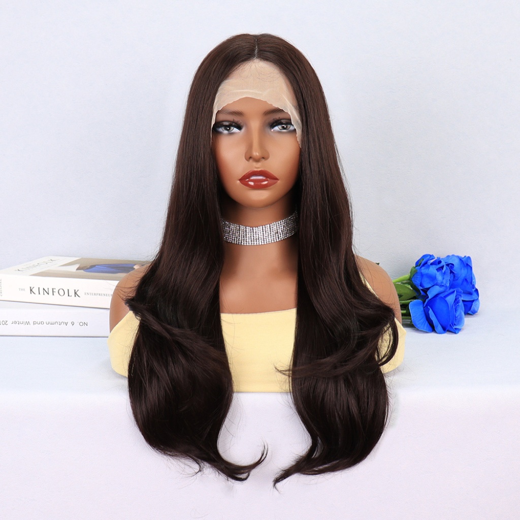 Koyu Kumral Hafif Dalgalı Tül Peruk