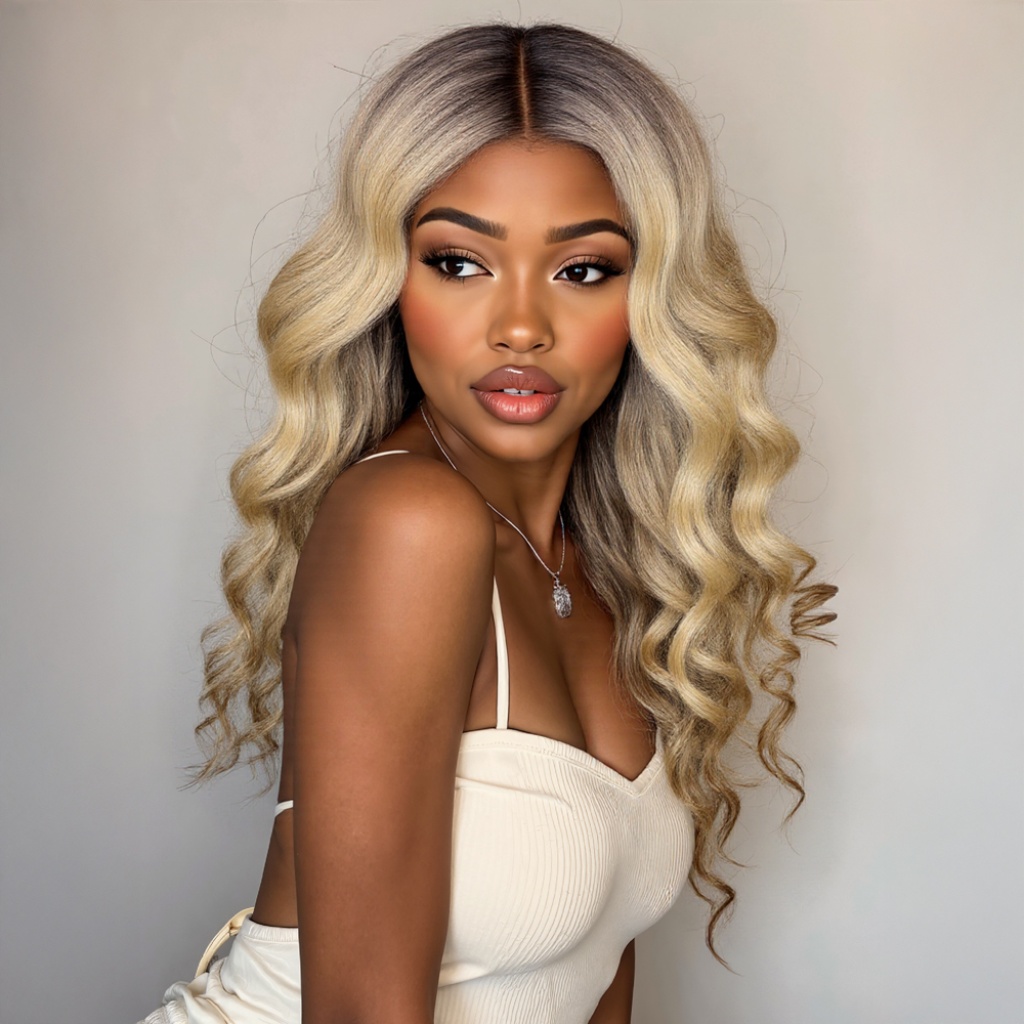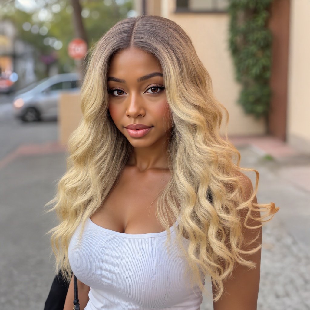 Kumral Dore Sarı Ombre ve Balköpüğü Röfleli Tül Peruk