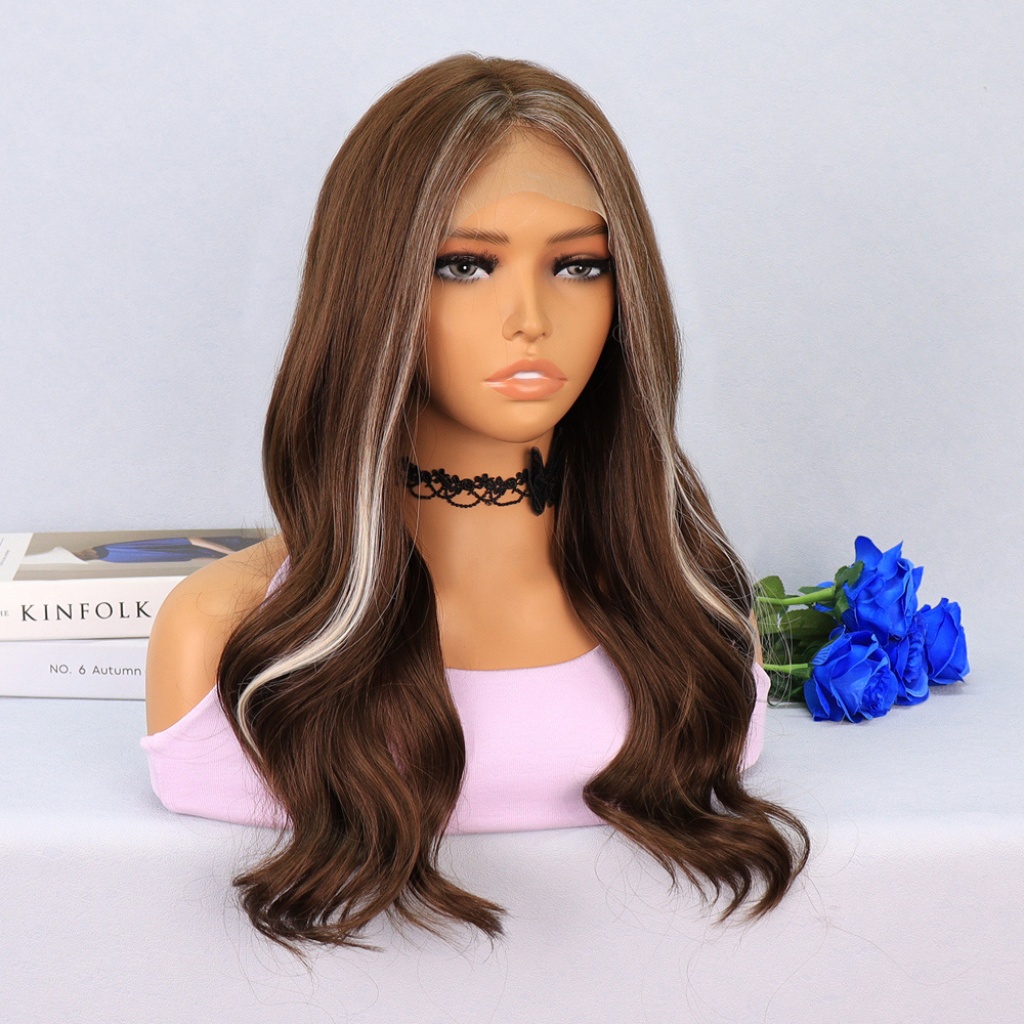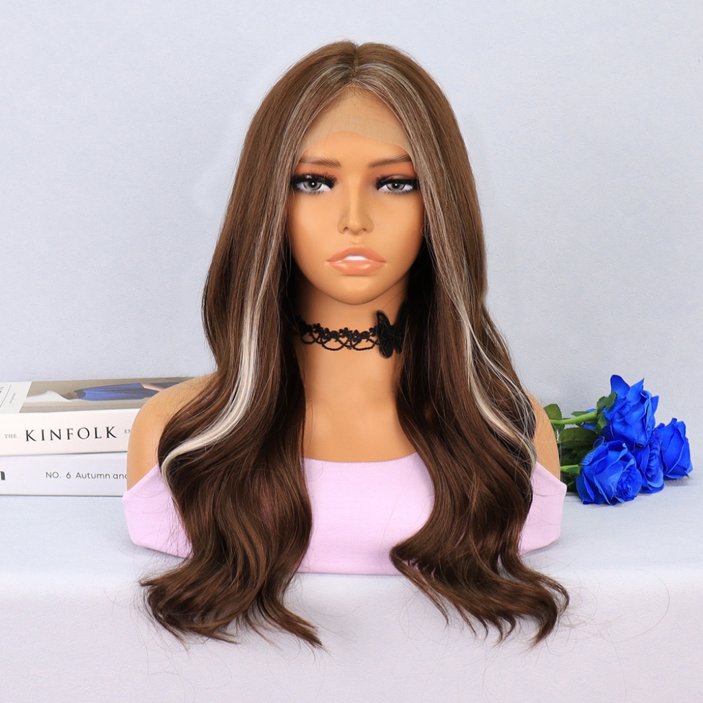 Kumral Önlerde Platin Işıltılı Dalgalı Tül Peruk