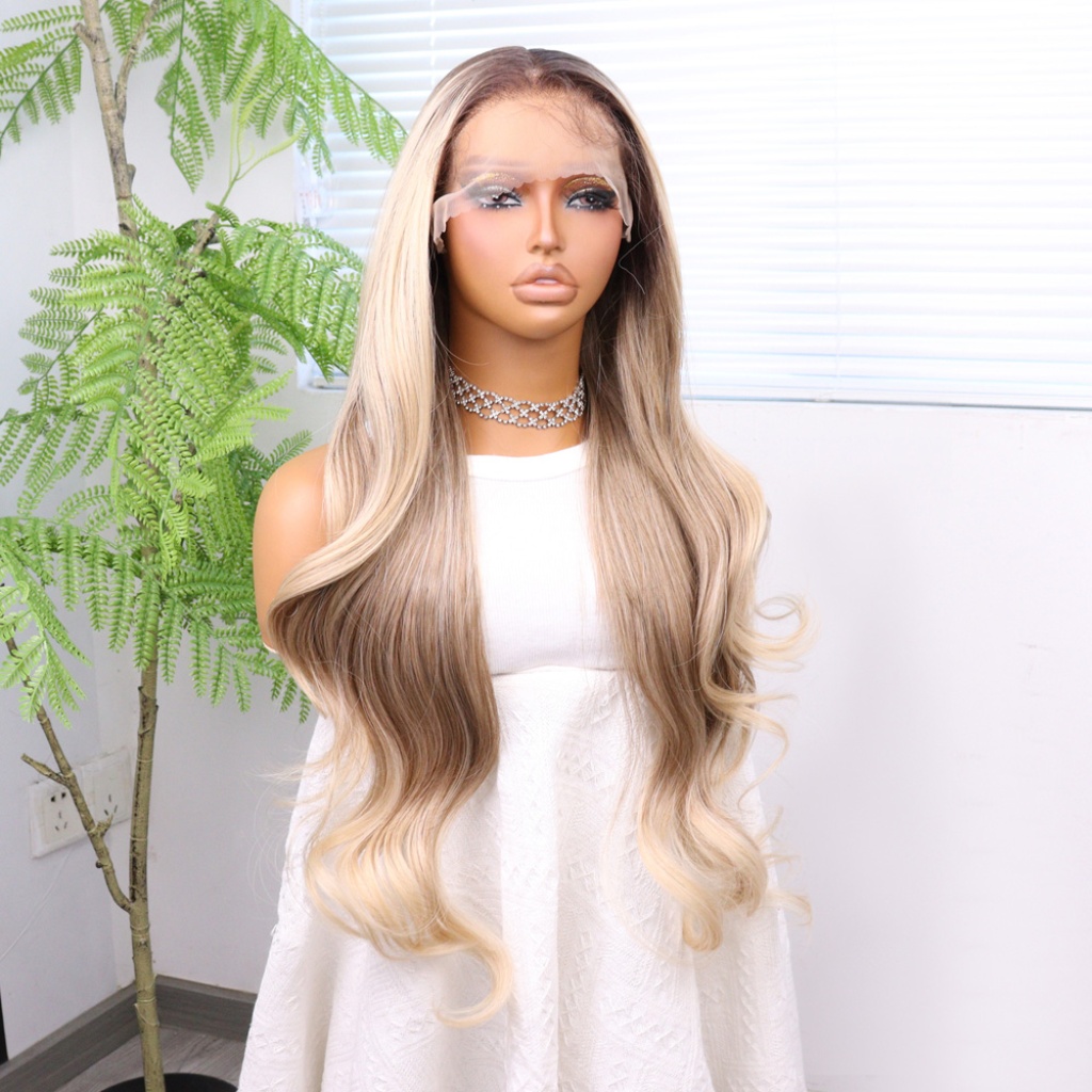 Kumral Platin Ombre ve Röfleli Bebek Saçlı Fiber Sentetik Tül Peruk