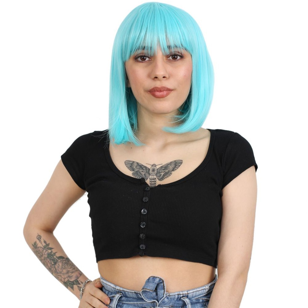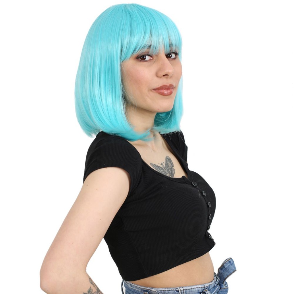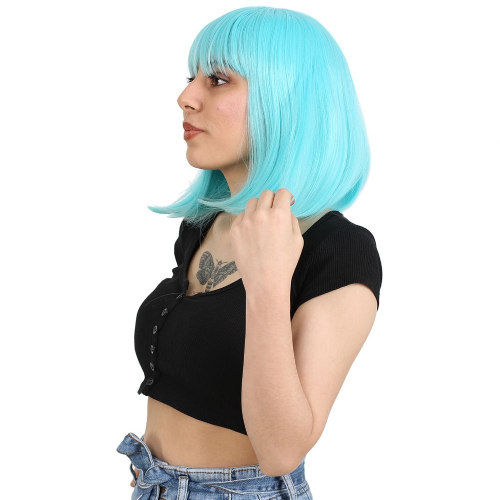 Küt Kahküllü Fiber Sentetik Peruk - Bebek Mavisi