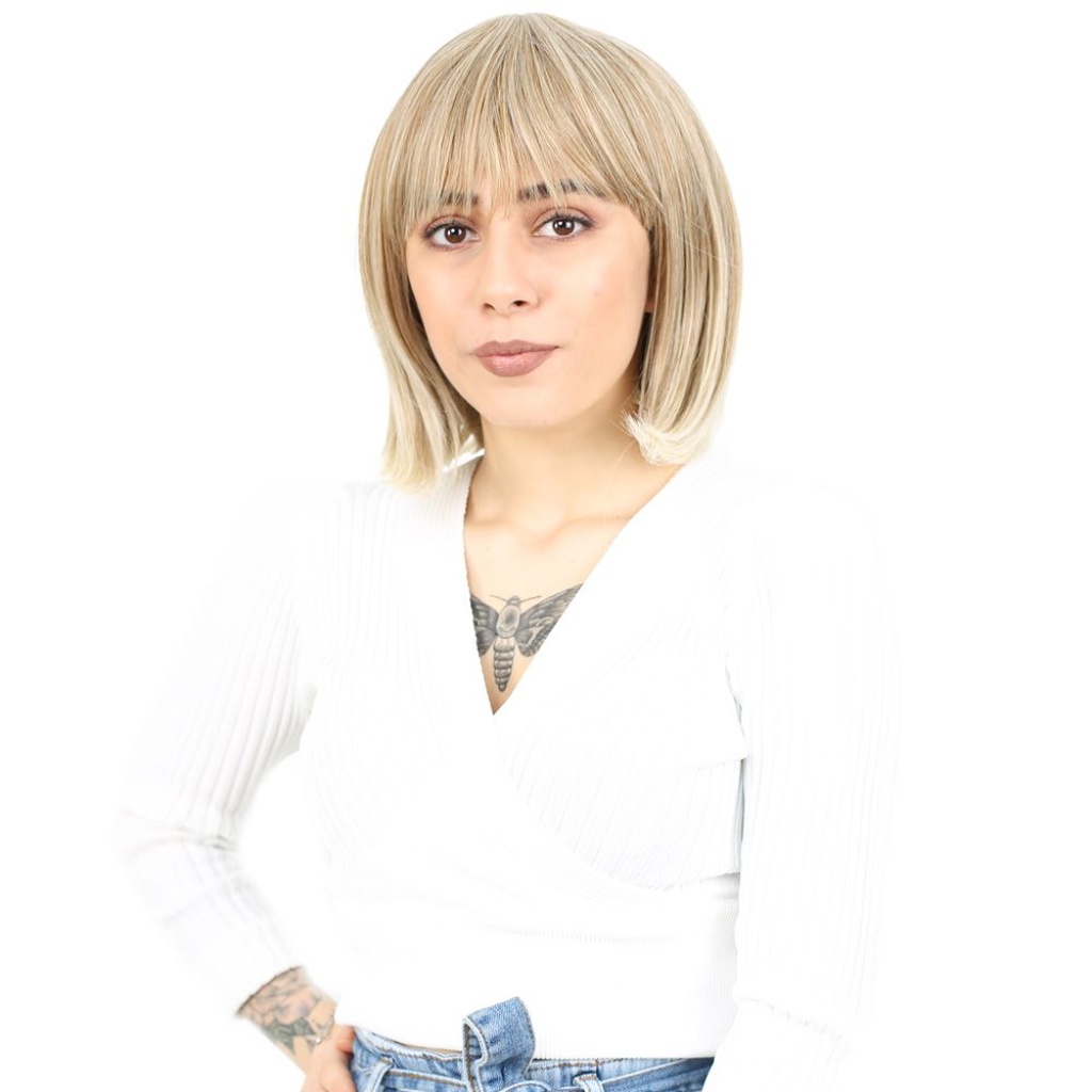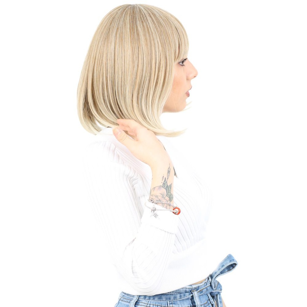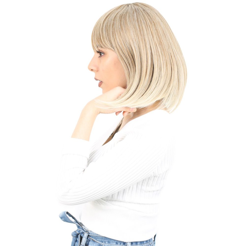Küt Kahküllü Fiber Sentetik Peruk - Karamel / Platin Röfleli