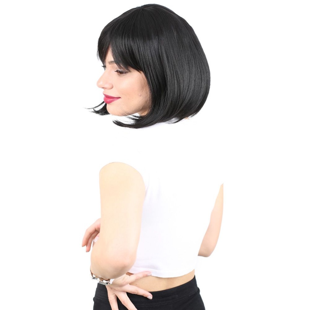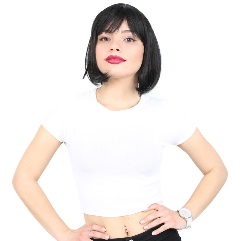 Küt Kahküllü Fiber Sentetik Peruk - Siyah