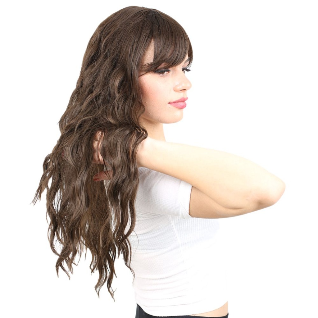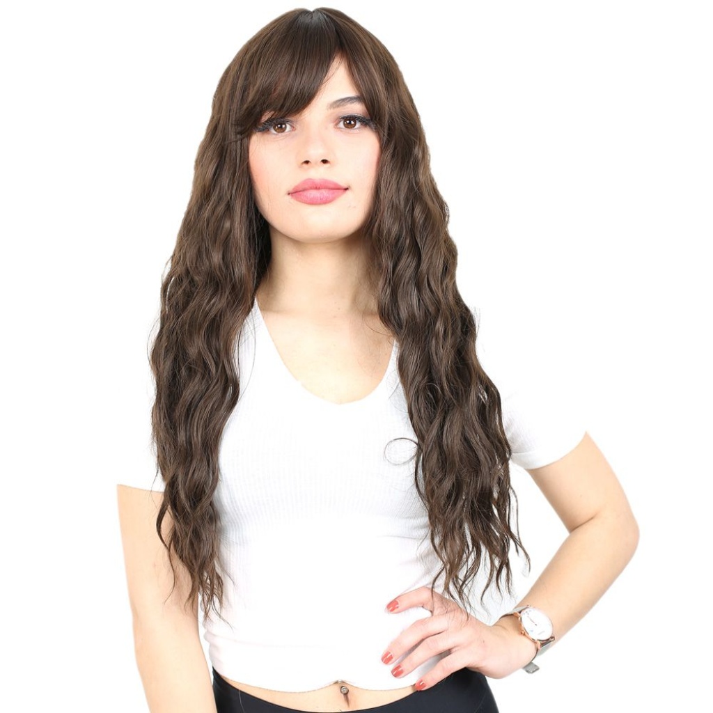 Perçemli Uzun Su Dalgası Fiber Sentetik Peruk- Açık Kahve